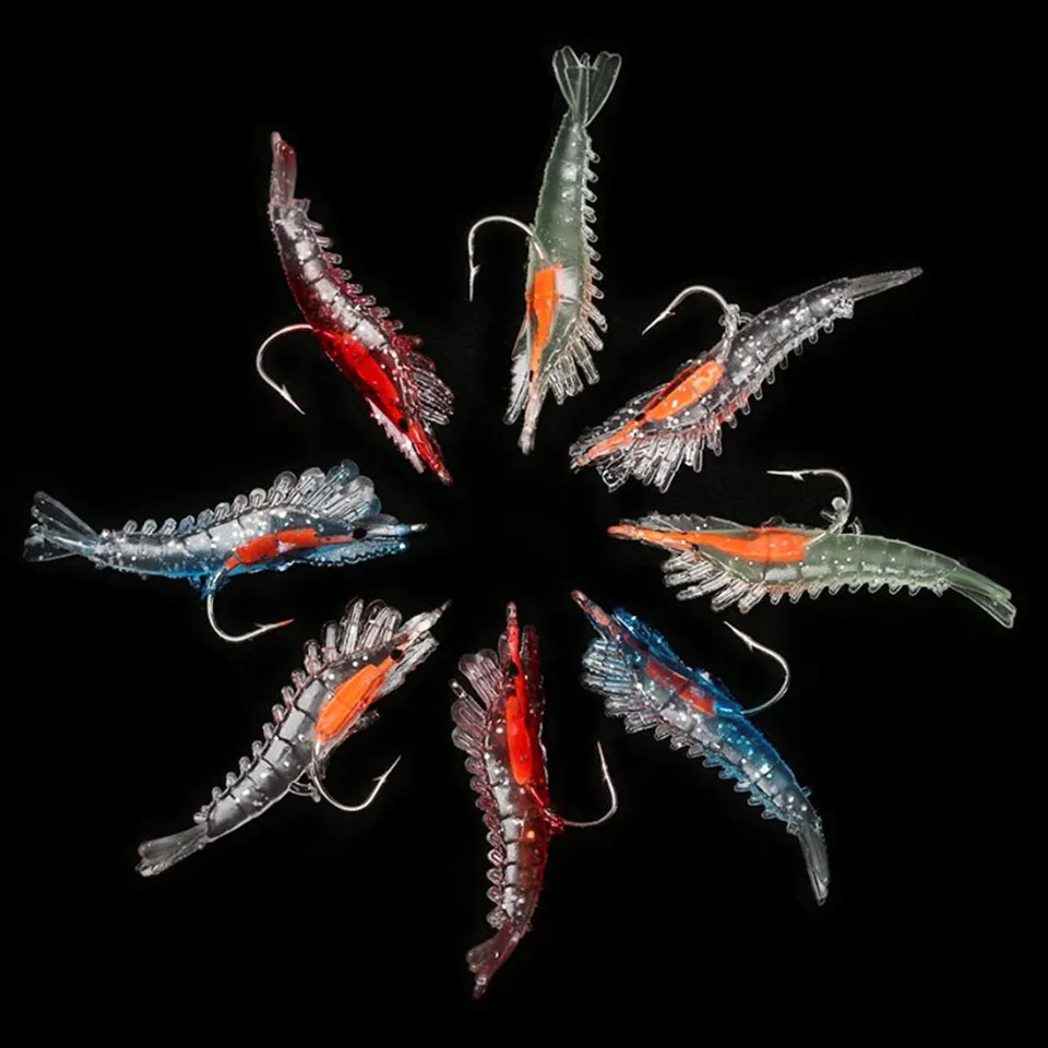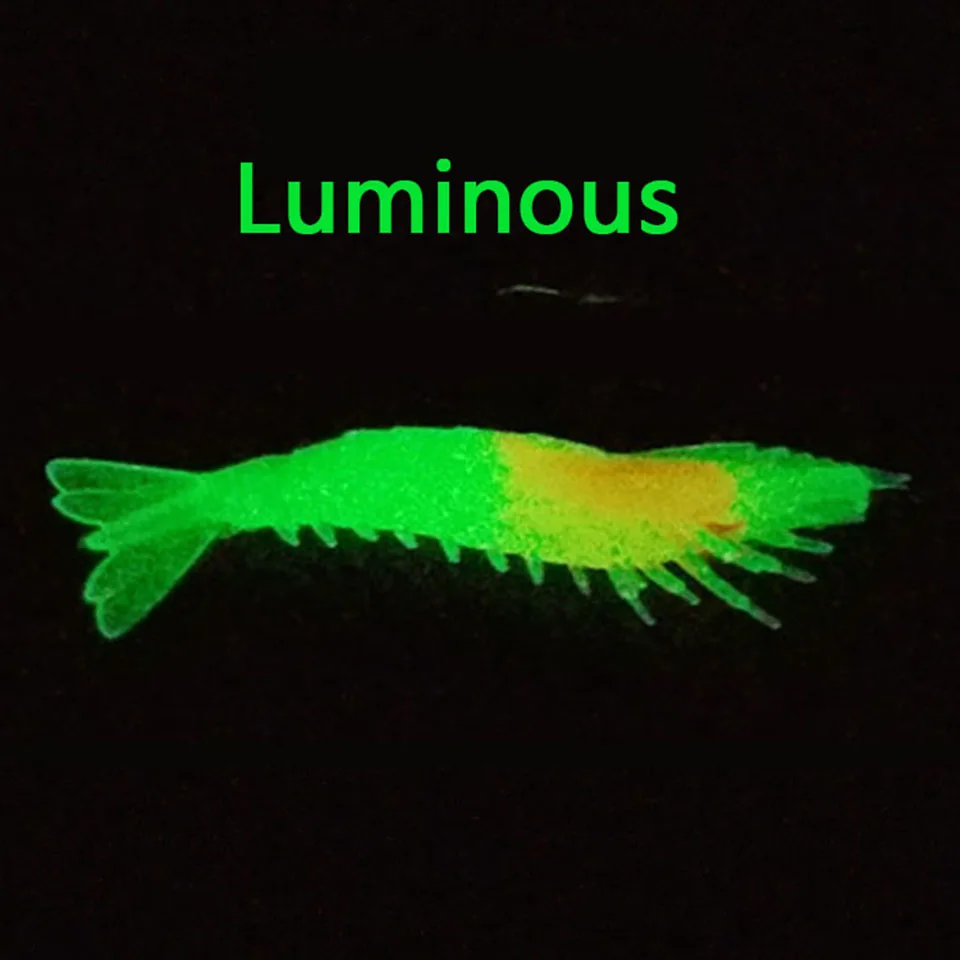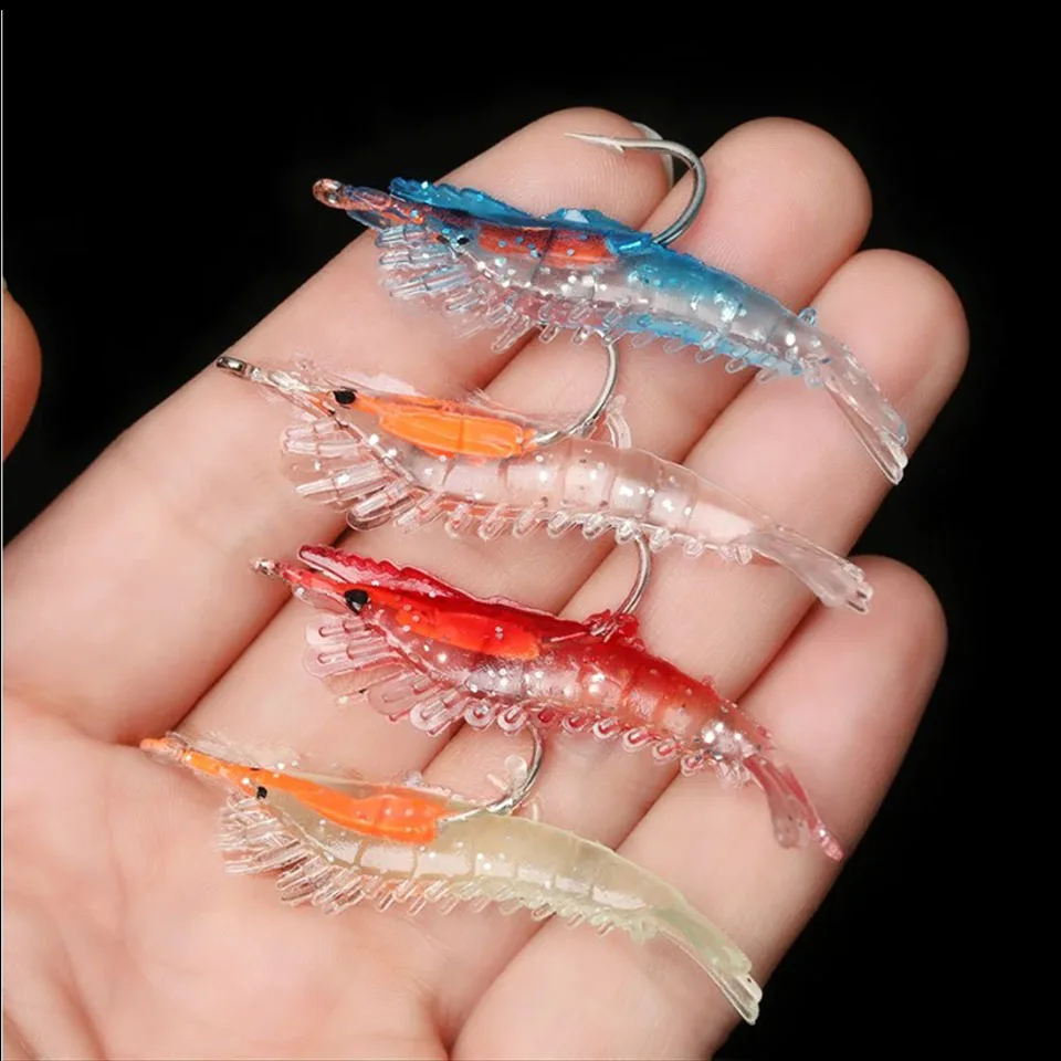 Cebos falsos luminosos para camarones, señuelo de simulación suave, cebo de trucha Artificial con un solo gancho, herramientas de pesca marina, 5 piezas