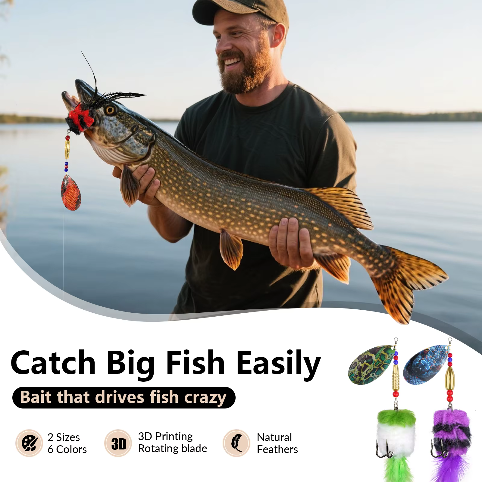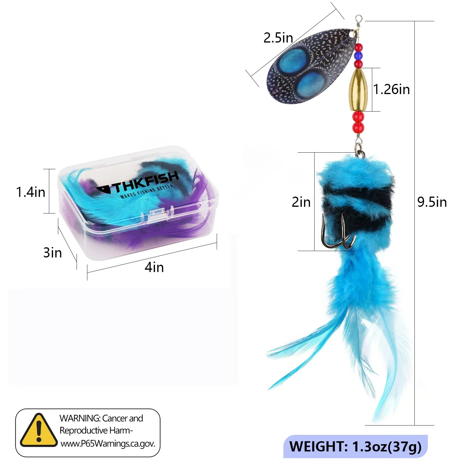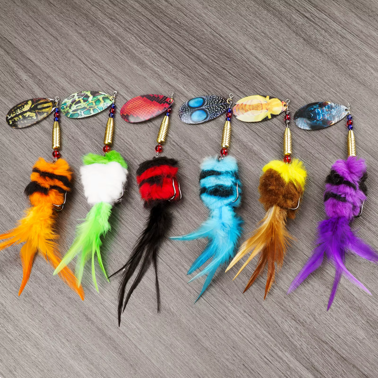 Cebos giratorios de 37g, cucharas de plumas de lentejuelas de Metal, señuelos para trucha, Lucio, Wobblers, señuelos duros con anzuelo triple, cebo Artificial, 2 uds.