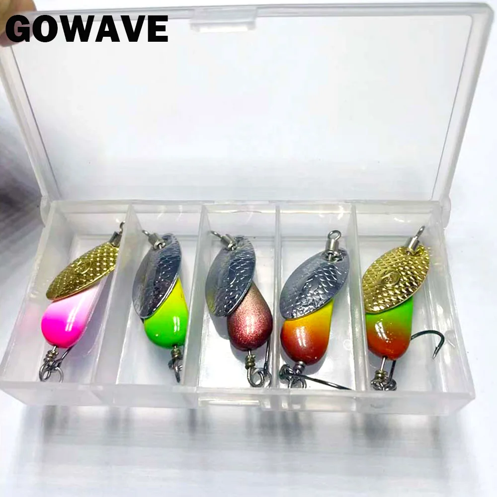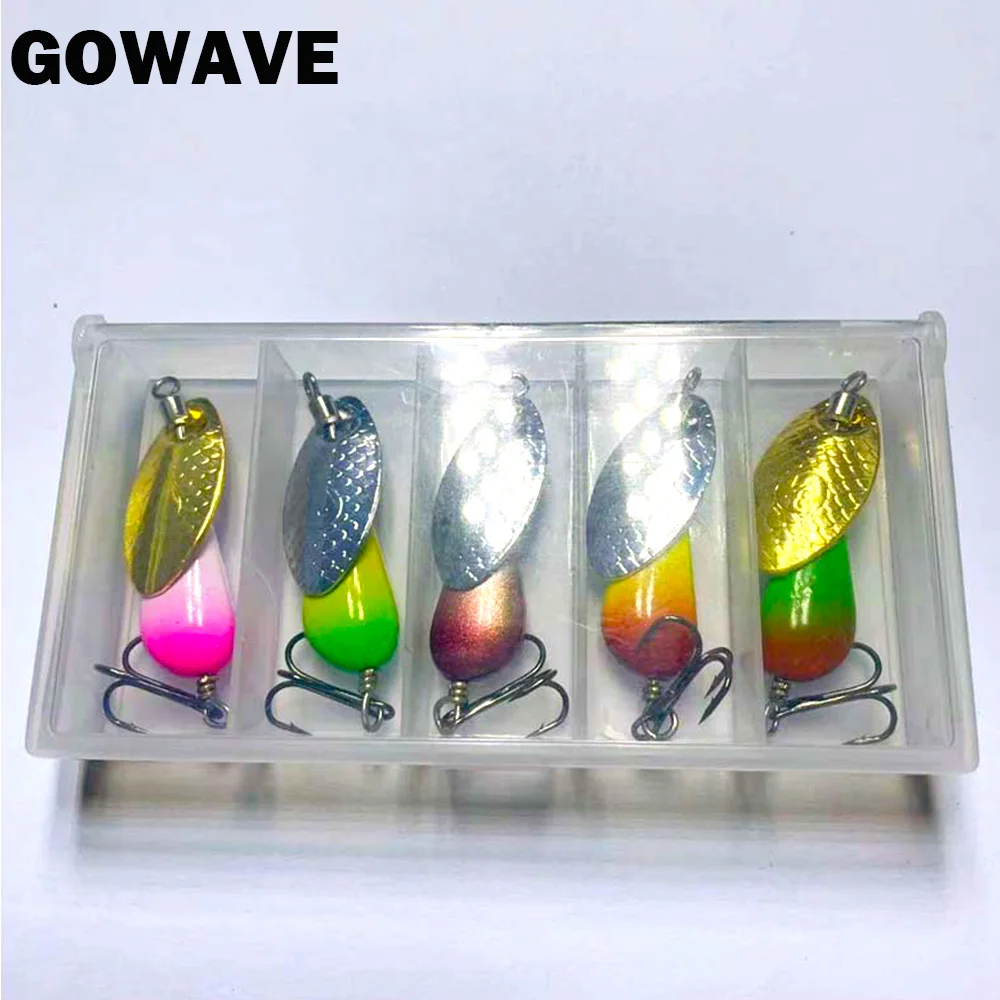 Cebos giratorios hechos a mano para pesca, cebos de tungsteno, dorado, plateado, pequeño señuelo de cobre para salmón, Lucio, Trou, AR-S, 2,6g/4,6g/6,6g, lote de 5 unidades
