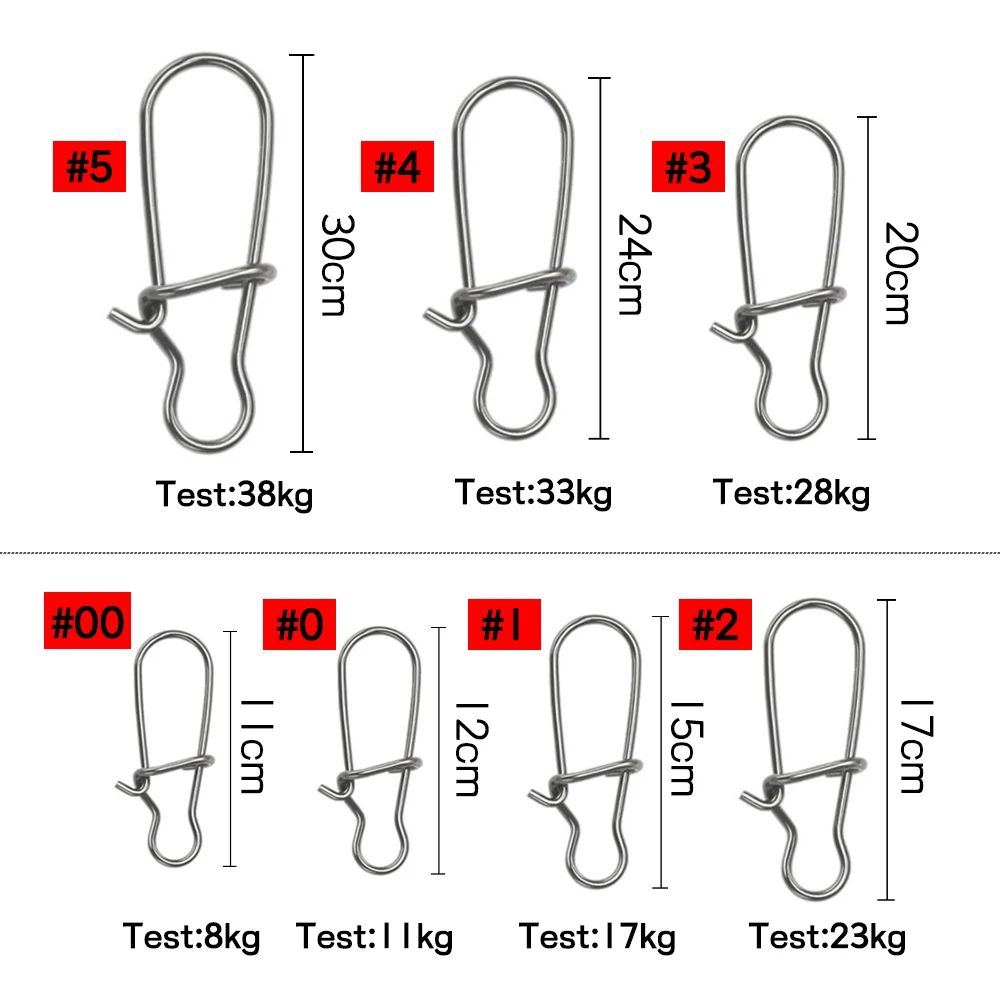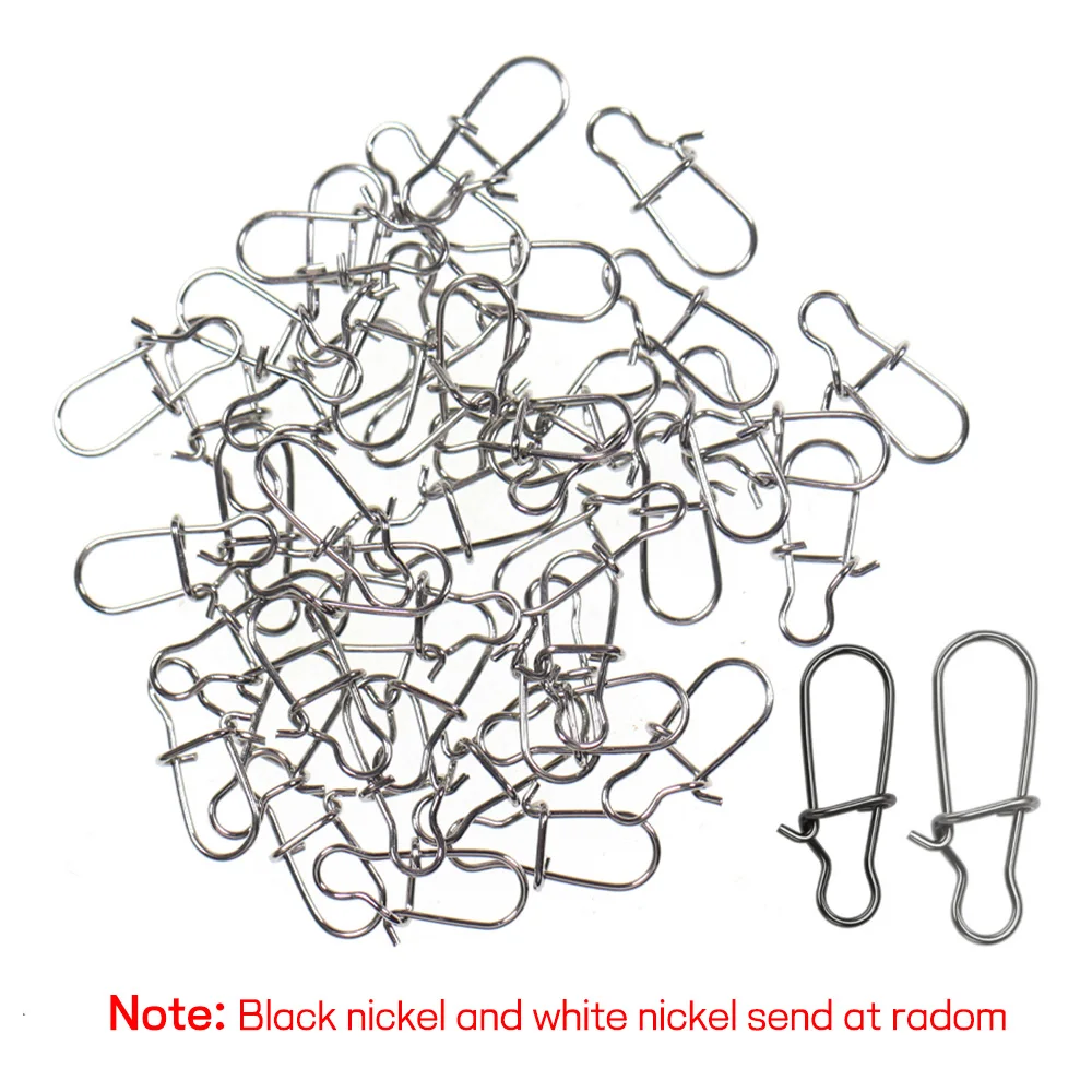 50 piezas Strengthend de acero inoxidable broche de seguridad cierre rápido Señuelos de Pesca anzuelos conector accesorios de aparejos de pesca
