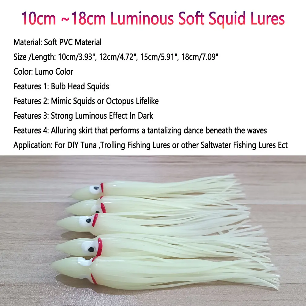 10cm 12cm 15cm 18cm luminoso suave calamar faldas señuelos