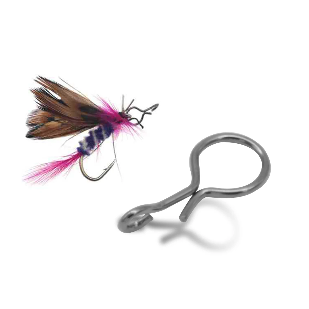 Cebos de pesca con mosca, anzuelos de cambio rápido para moscas, cierre de acero inoxidable, broches de pesca negros, aparejos giratorios de enlace con Clip, 50 Uds.