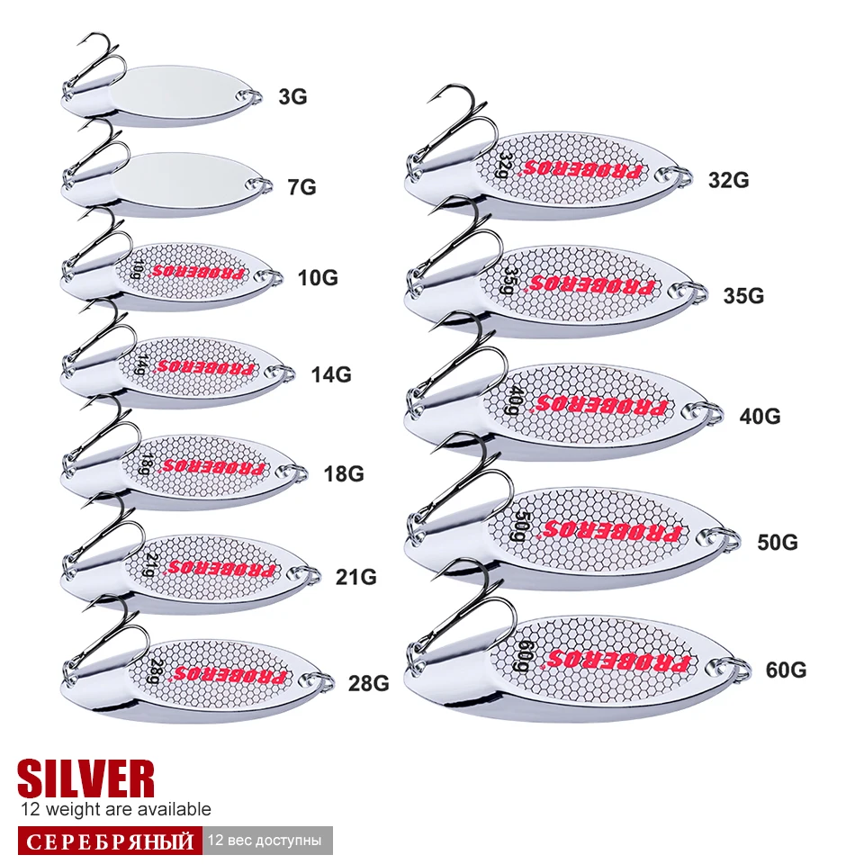 Cebos de pesca de piezas, señuelo de cuchara de Metal, 1g-60g, cebo de lubina de Metal, señuelo de pesca de cuchara plateada 10 #-2 #, anzuelo de Metal, aparejos de pesca