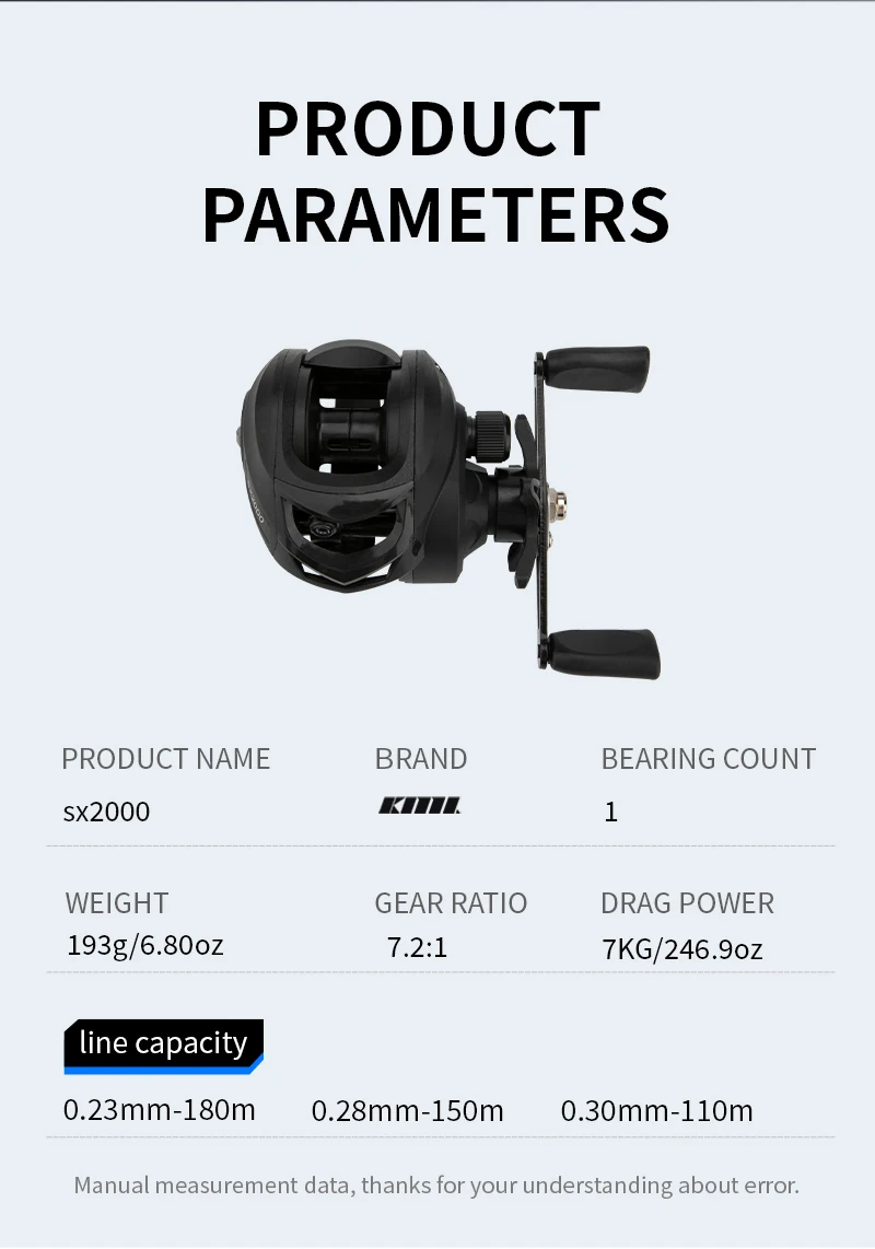 CEMREO 7KG Drag Power Bait Casting carrete de pesca sistema de freno magnético 7,2: 1 carrete de pesca para pescador modelo: SX2000