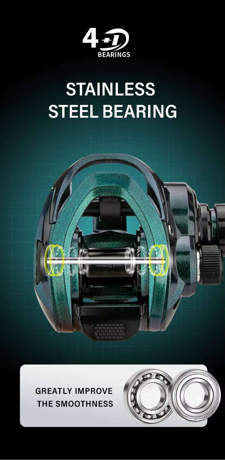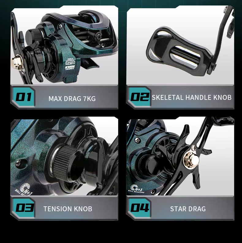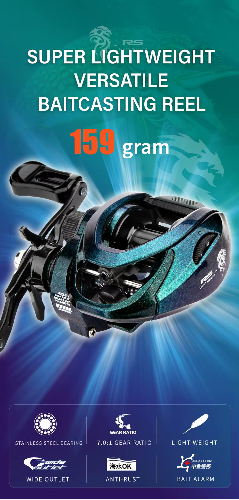 CEMREO-carrete de pesca de fundición de cebo, sistema de freno magnético de arrastre de 7kg, 7,0: 1, carrete de cuerpo pequeño, aparejos de pesca de lubina, trucha, pesca de carpa RS