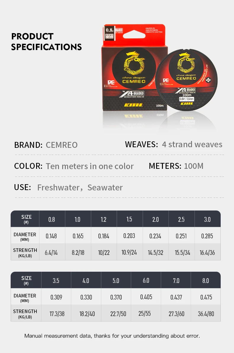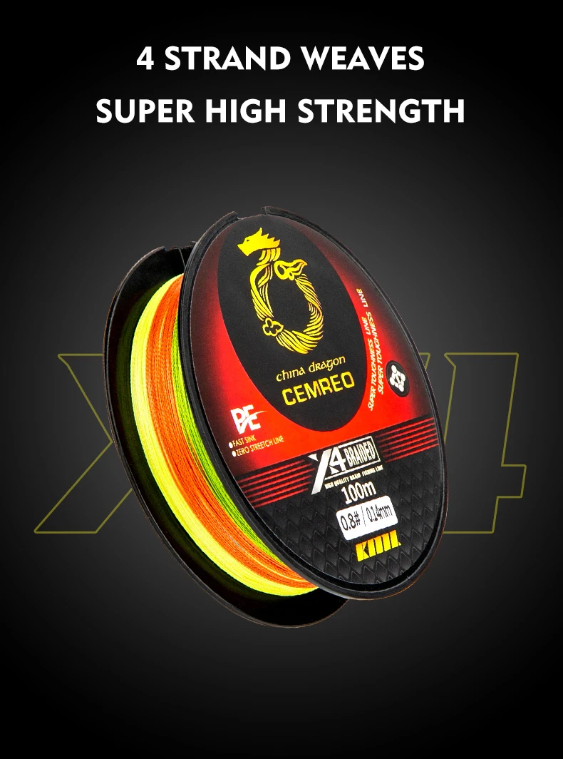 CEMREO-sedal de pesca PE de 4 hebras, hilo trenzado superfuerte multifilamento para carpa, 100m, accesorios de pesca