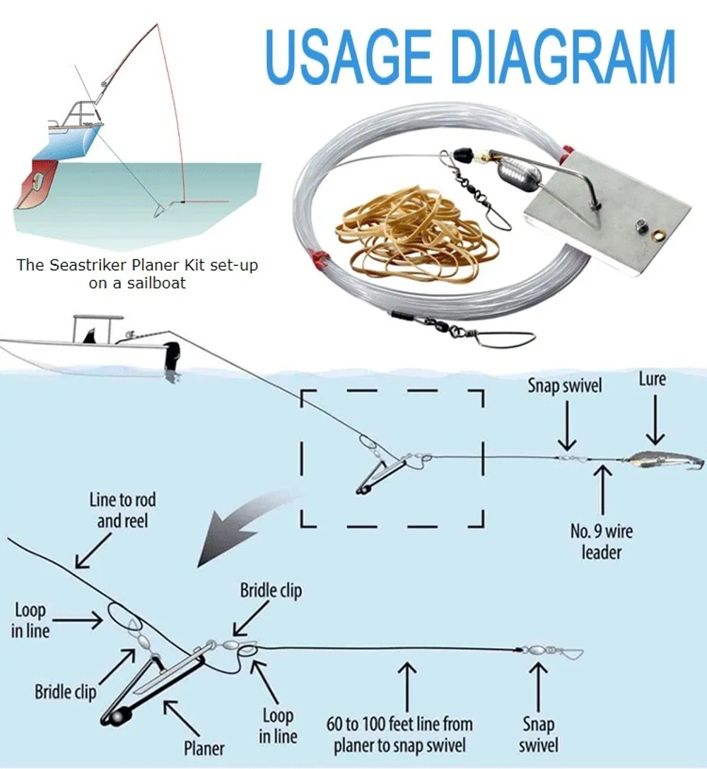 5.Simple Setup: Secure mainline to the planer's large brass ring and connect leader directly to blade loop for quick and efficient setup, optimizing your trolling diving board efficiency.