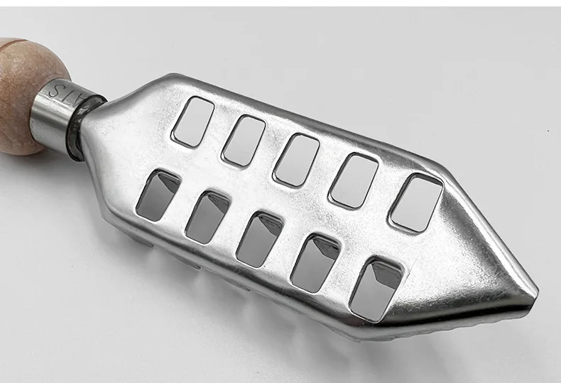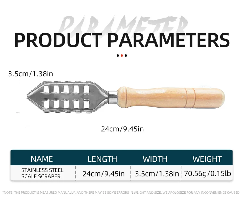 1.Parte del material está hecha de acero inoxidable, moldeado de una pieza, súper resistente, diseño de mango de madera, hermoso y duradero, longitud total de 3,5 cm/1,38 pulgadas.