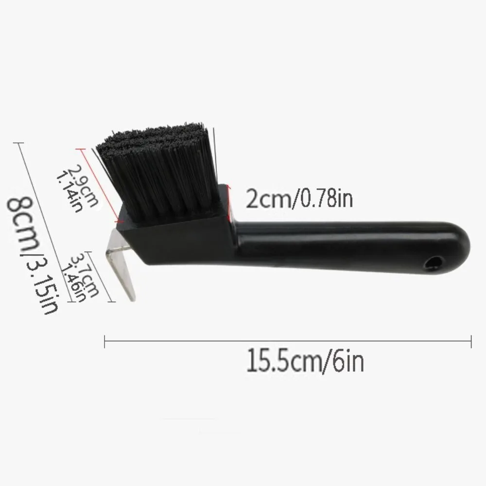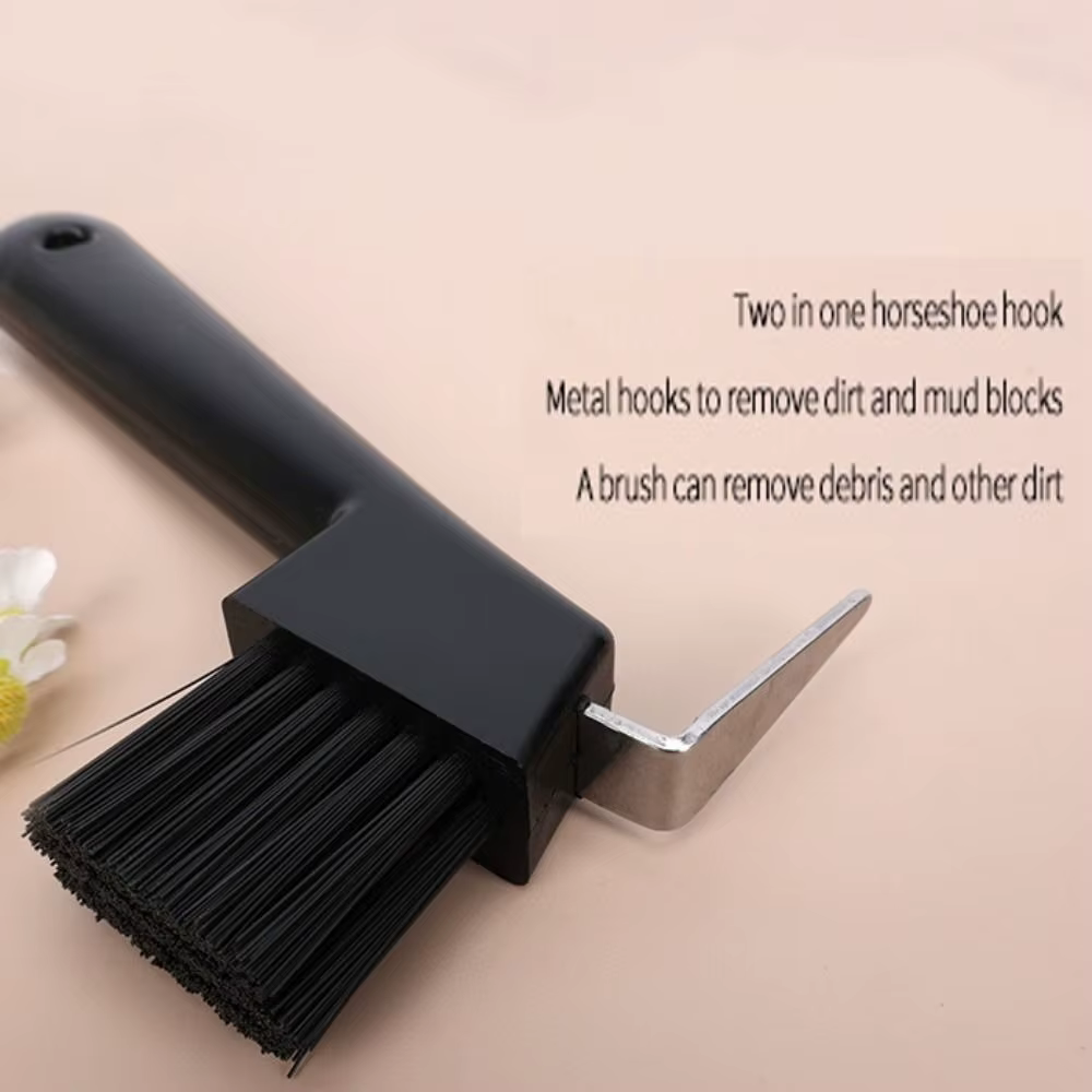 Material: negro, tamaño del metal: 15,5*8*2cm (6,10*3,15*0.79in) Tipo: cepillo de pezuña de caballo Color: negro Peso: aproximadamente 60g El paquete incluye: 1 cepillo para pezuñas de caballo. Características: Material de primera calidad: el cepillo para pezuñas de caballo está hecho de PP y gancho niquelado, que es resistente, no se oxida fácilmente, y no dañará la pezuña del caballo. Mango ergonómico: Su mango está diseñado ergonómicamente, fácil de agarrar, cómodo de sostener y no se caerá fácilmente de la mano. Multifunción: Este cepillo para caballos se puede utilizar para eliminar el barro de caballos, burros, cabras, también se puede utilizar para limpiar los neumáticos de su automóvil o Botas de senderismo que están con barro. Función de limpieza: Este producto ayuda a eliminar la mayor parte de la suciedad de la pezuña del caballo, es un accesorio ideal para limpiar las pezuñas. Fácil de almacenar: tiene un pequeño orificio en el mango, lo que nos permite colgarlo cuando no necesitamos usarlo, ahorrando espacio.