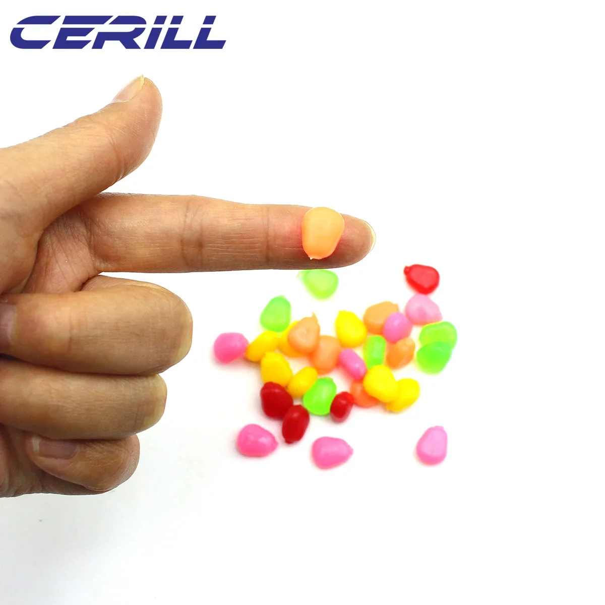 Cerill 50 unids/bolsa 1cm 0,4g silicona flotante cebo de maíz crema olor suave señuelo de pesca gusano Artificial carpa falso Swimbait