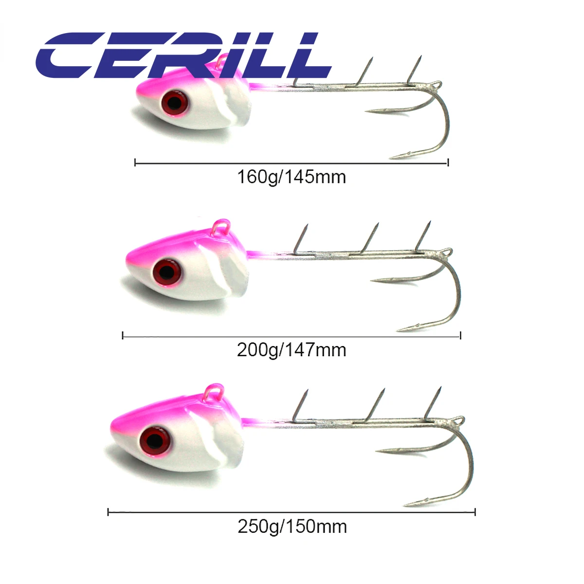 Ceril-placa de hierro fundido de peso pesado, anzuelo de sangre brillante, señuelo suave, ojos 3D, anzuelo de pargo de lubina de mar, 160g, 200g, 250g