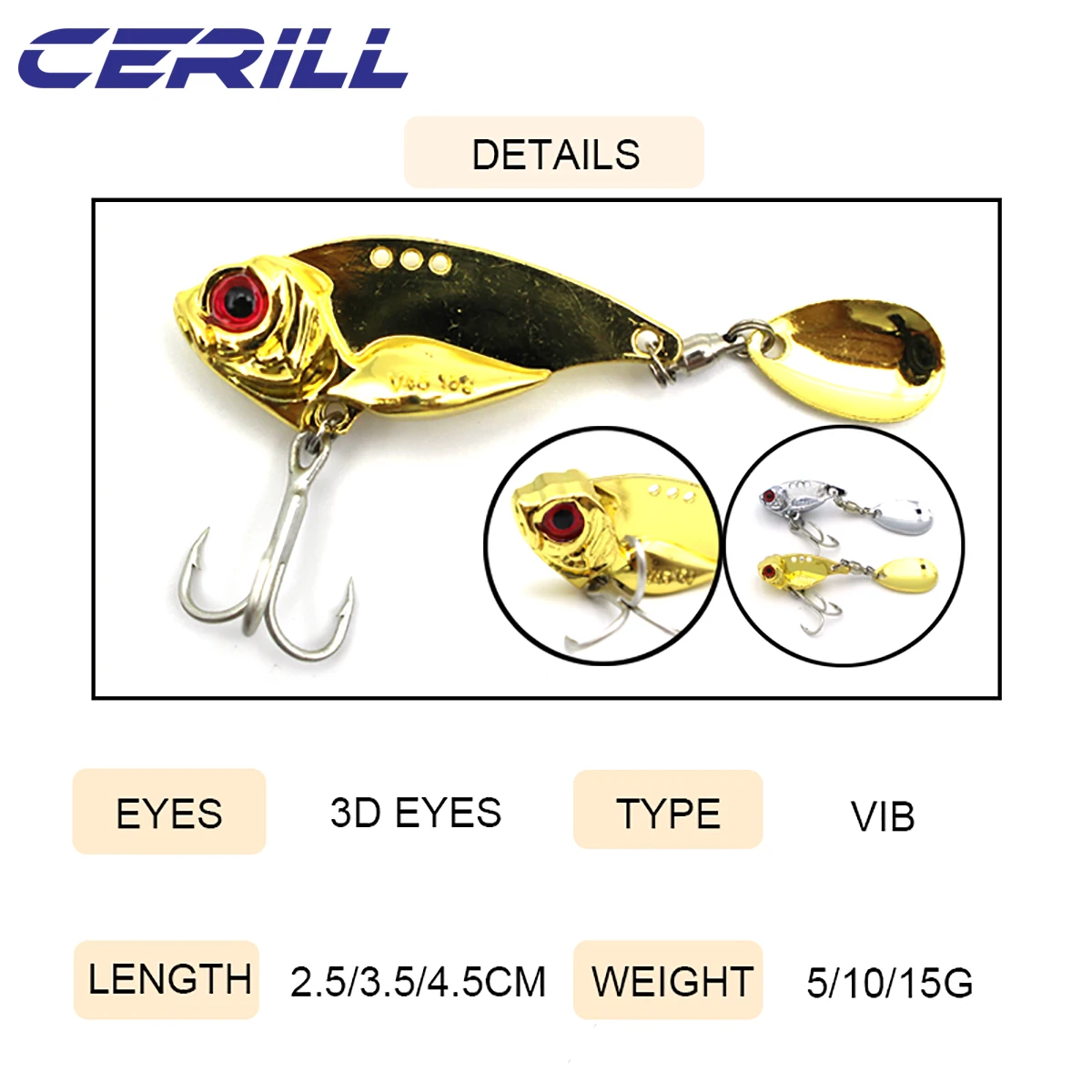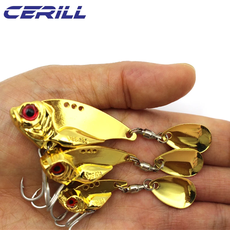 Cerill 5G 10g 15g Cuchara Lentejuelas Metal VIB Señuelo de pesca Gancho triple Vibración Jigging Carp Bass Wobblers Gancho triple Swimbait