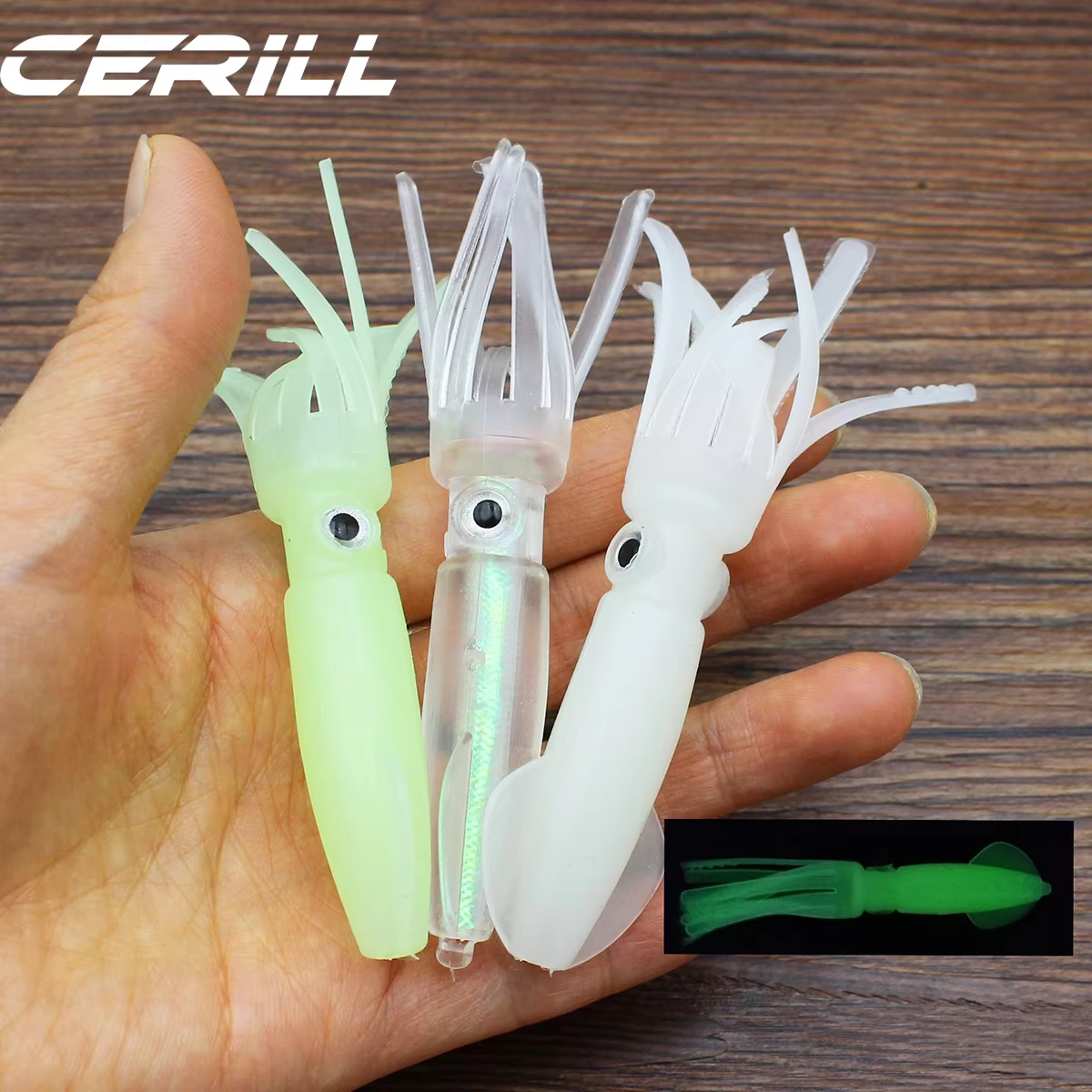 Cerill-Cebo de Silicona Suave para Pesca, Falda de Goma de Pulpo, Cebo de Agua Salada, Sábalo Luminoso, 5 y 10cm, 9g