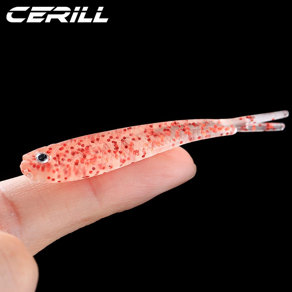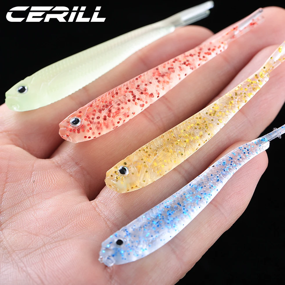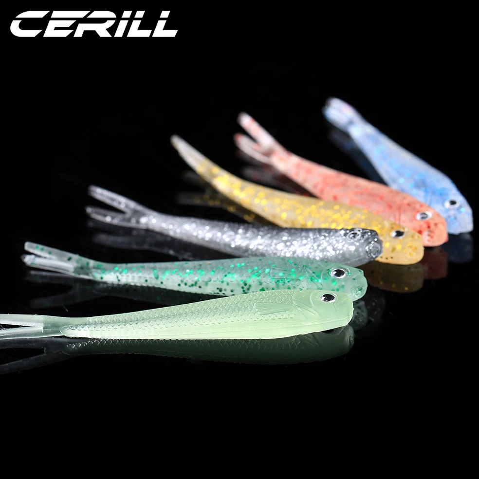 Cerill 5 uds señuelo de pesca suave realista tenedor cola gusano cebo Shiner silicona Artificial Pike Bass Jig Swimbait Jigging Wobbler