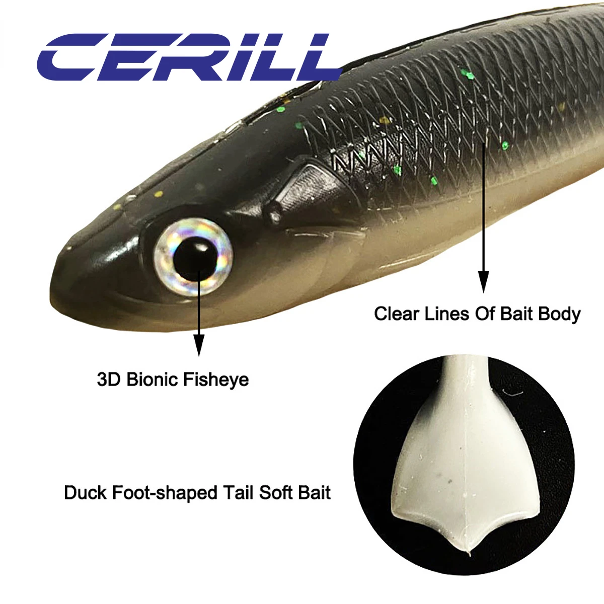 Cerill-Señuelo de Pesca de Plástico, Cebo Artificial de Pato, Ojo 3D, Palma, Paleta, Cola, Suave, 10cm, 5,5G, 10cm, G