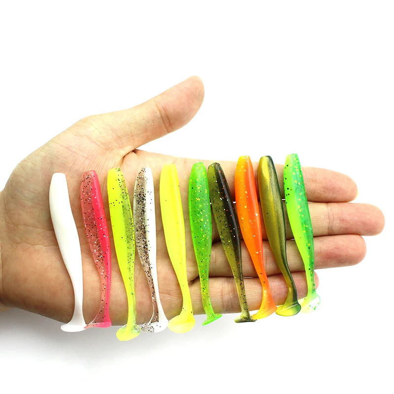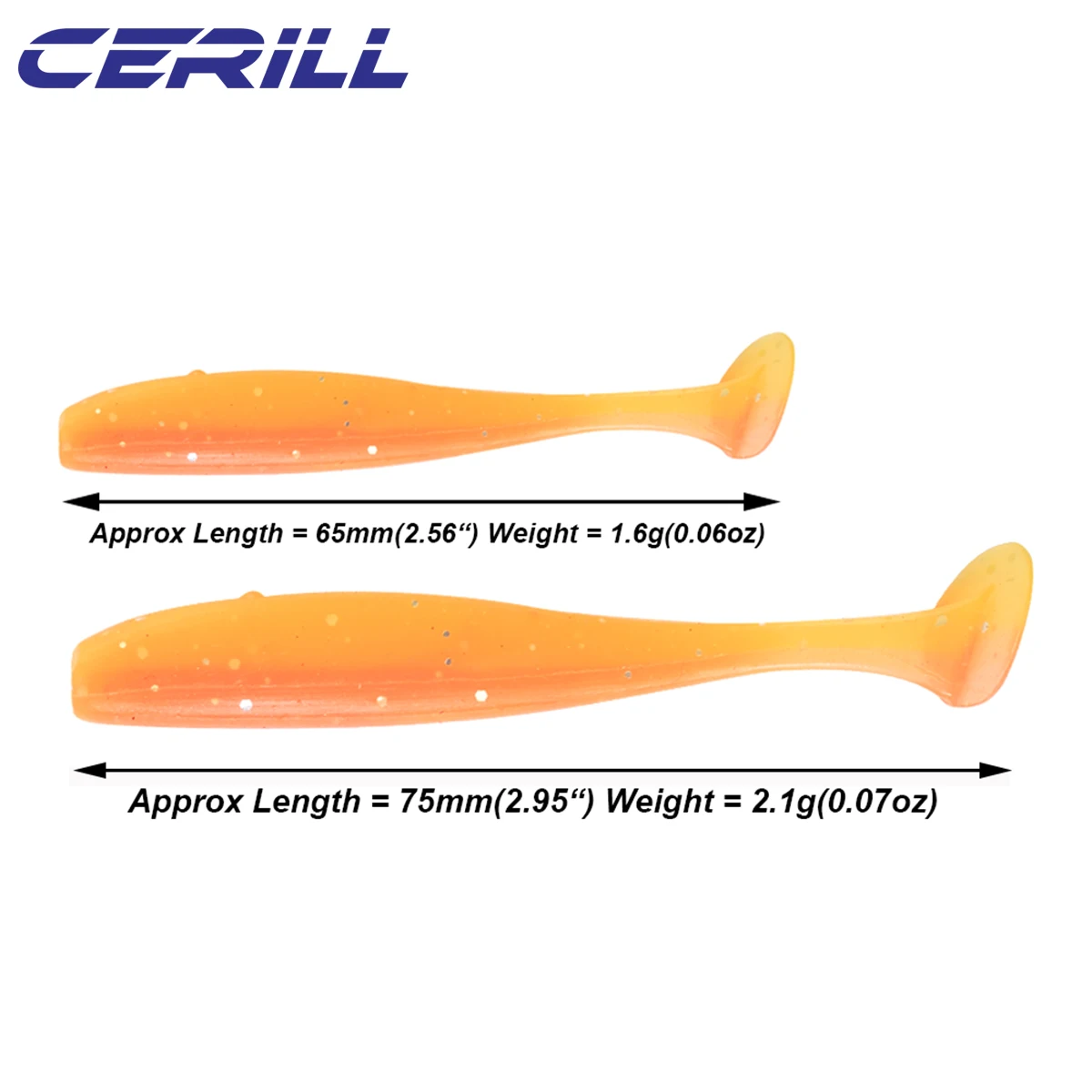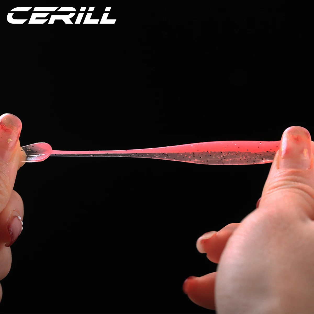 Cerill-Señuelo de pesca de cola en T artificial, cebo de gusano de silicona de doble color, 10mm, 65mm, 75mm