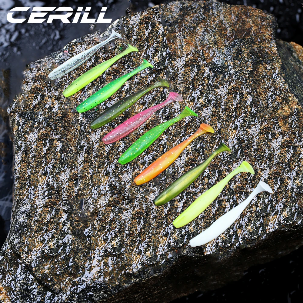 Cerill-Señuelo de pesca de cola en T artificial, cebo de gusano de silicona de doble color, 10mm, 65mm, 75mm