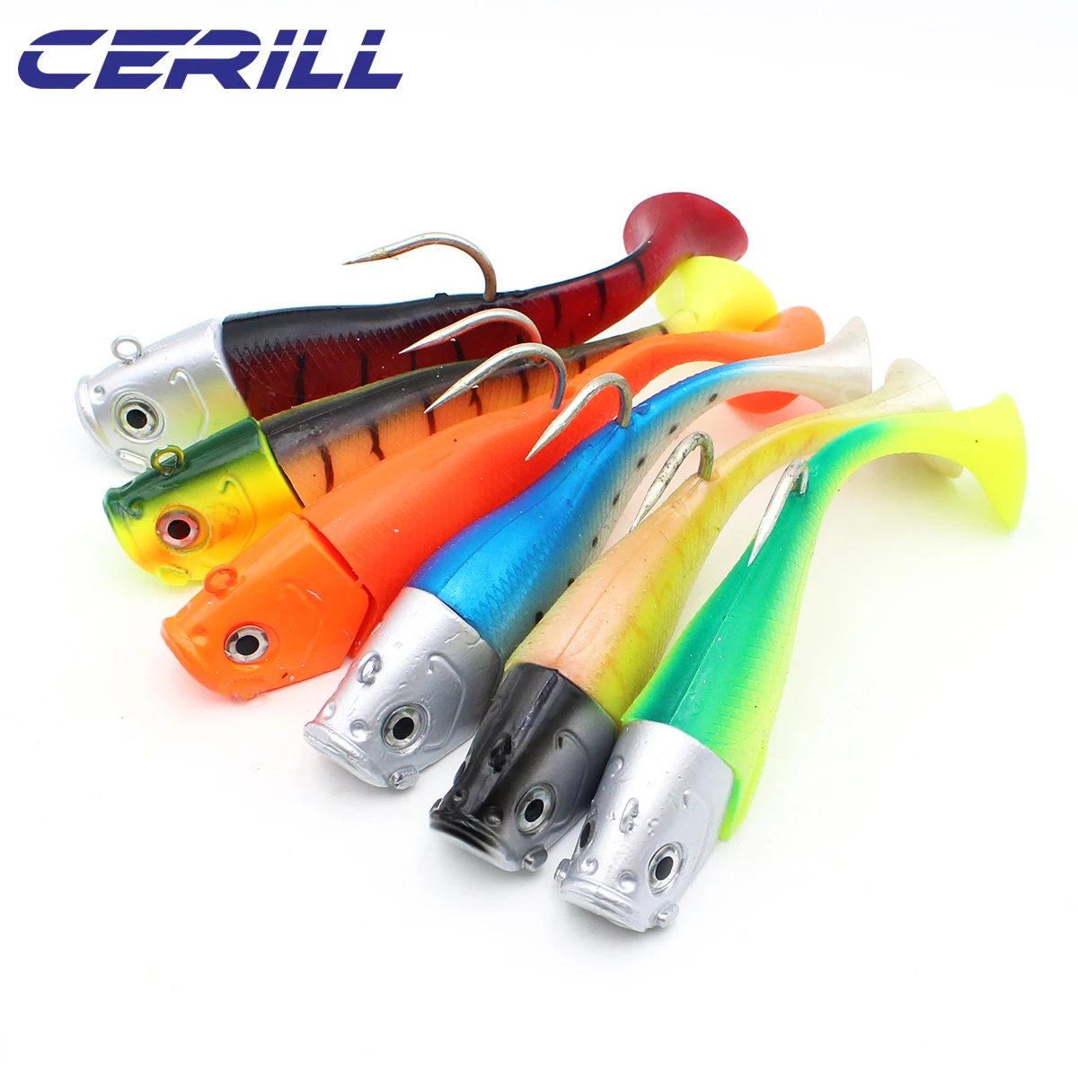 Cerill 190mm 305G 3D Eyes Jigging Wobbler Señuelo de pesca suave Silicona artificial Bass Pike Sea Realista Carpa Plomo Jig Head Bait