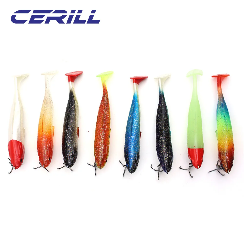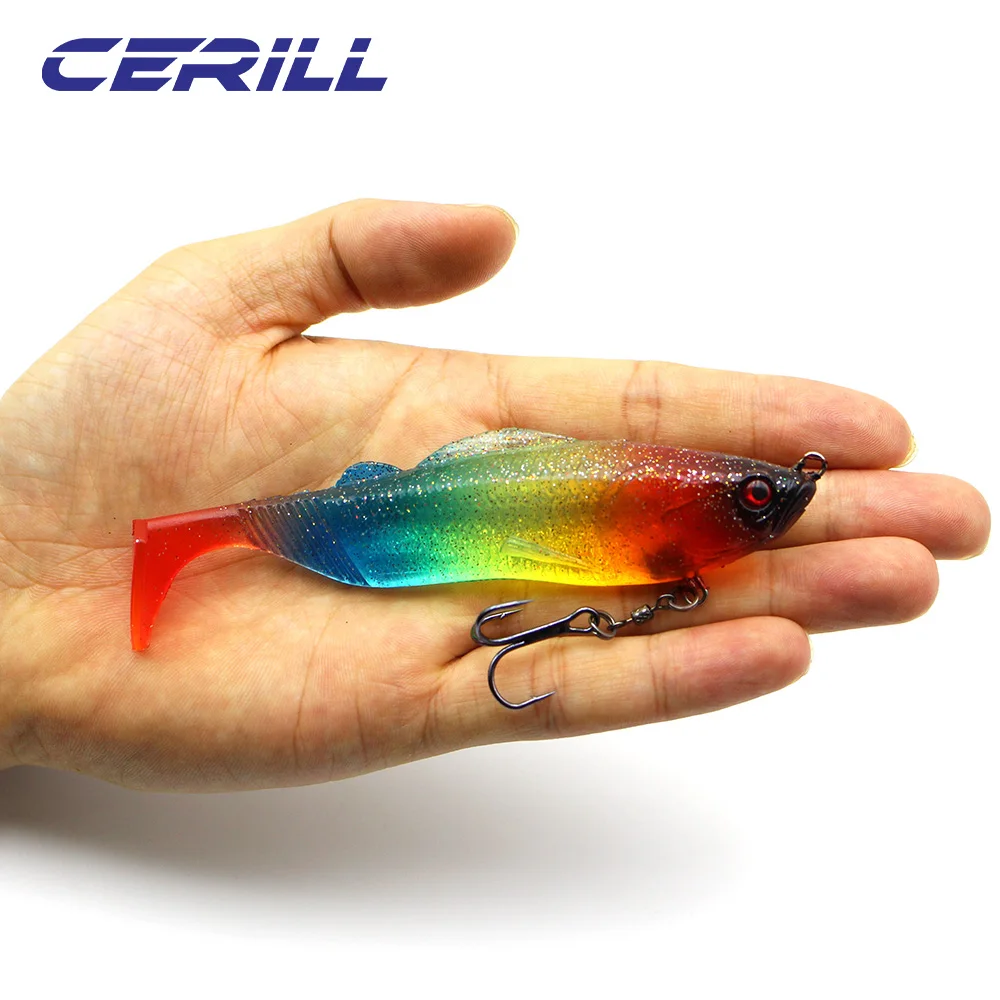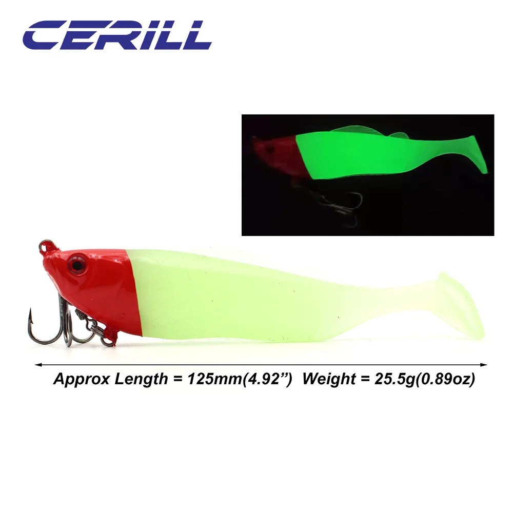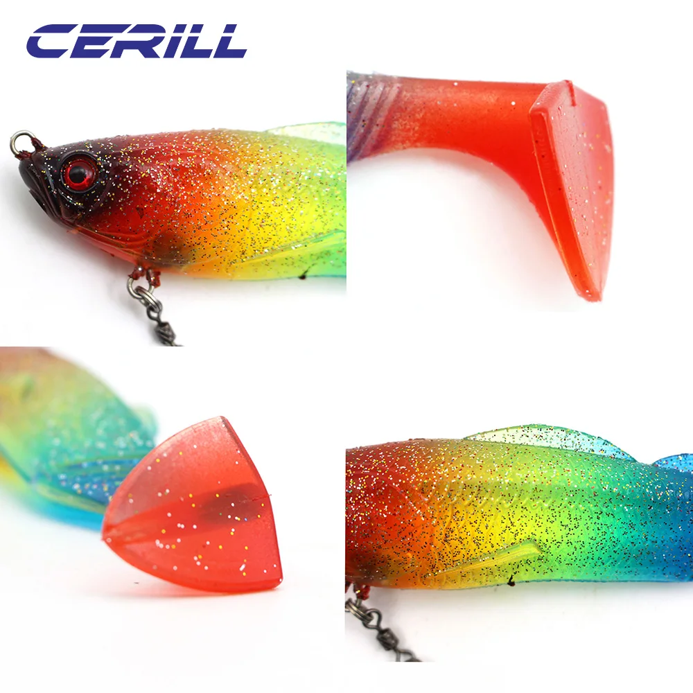 Cerill 25g 125mm Big Game señuelo de pesca suave Shad cebo de silicona Wobbler cola de paleta con anzuelo Lucio lubina natación onda fuerte