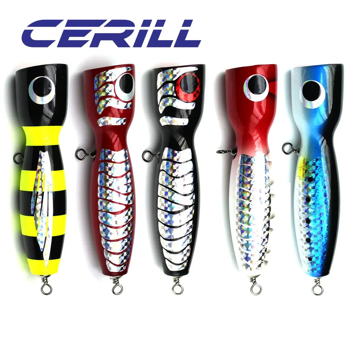 Cerill, 1 pieza, 19cm, 120g, Popper de madera hecho a mano, señuelo de pesca de superficie, curricán, juego grande, Jigging, Crankbait, cebo de atún de tiro largo, aparejos