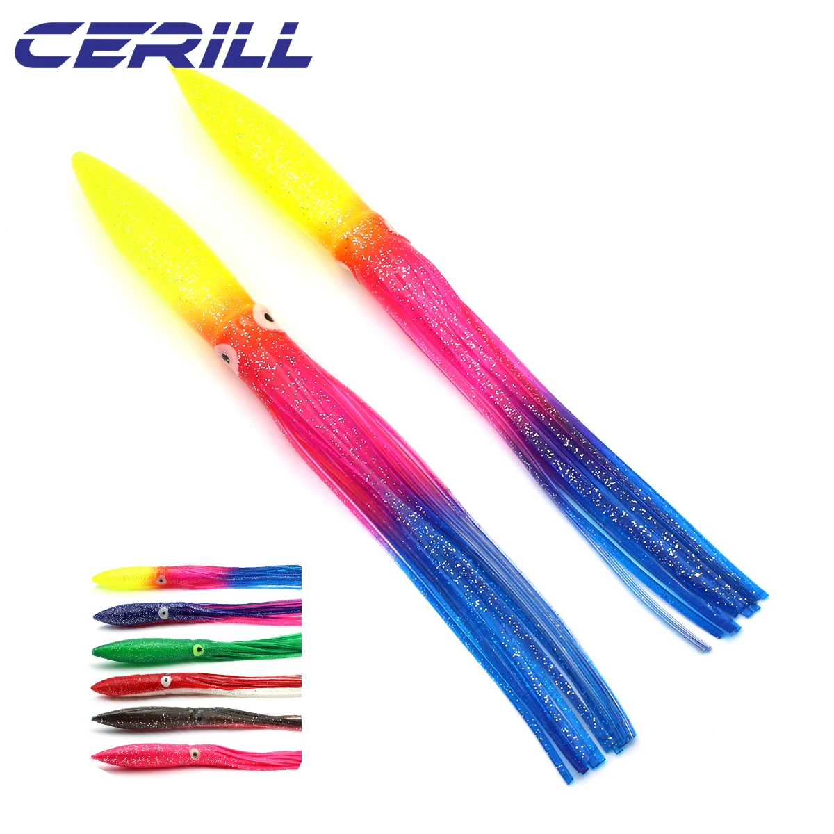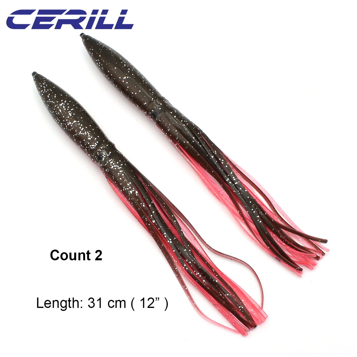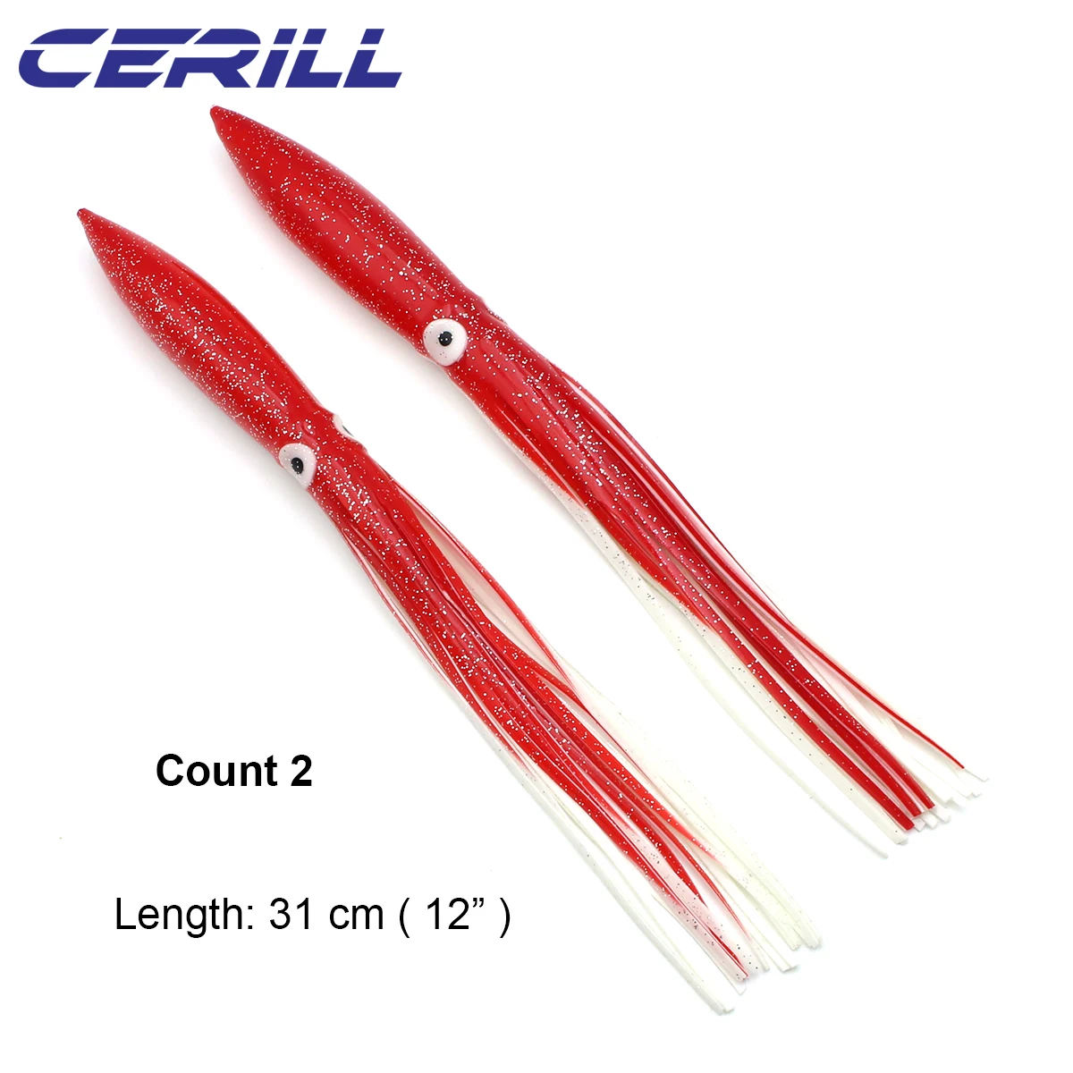 Cerill-Señuelo de pulpo de plástico blando, cebo de agua salada aparejado, plantilla de carpa, Wobbler, Swimbait, falda de calamar multicolor, 31cm