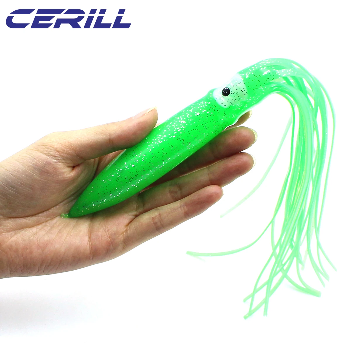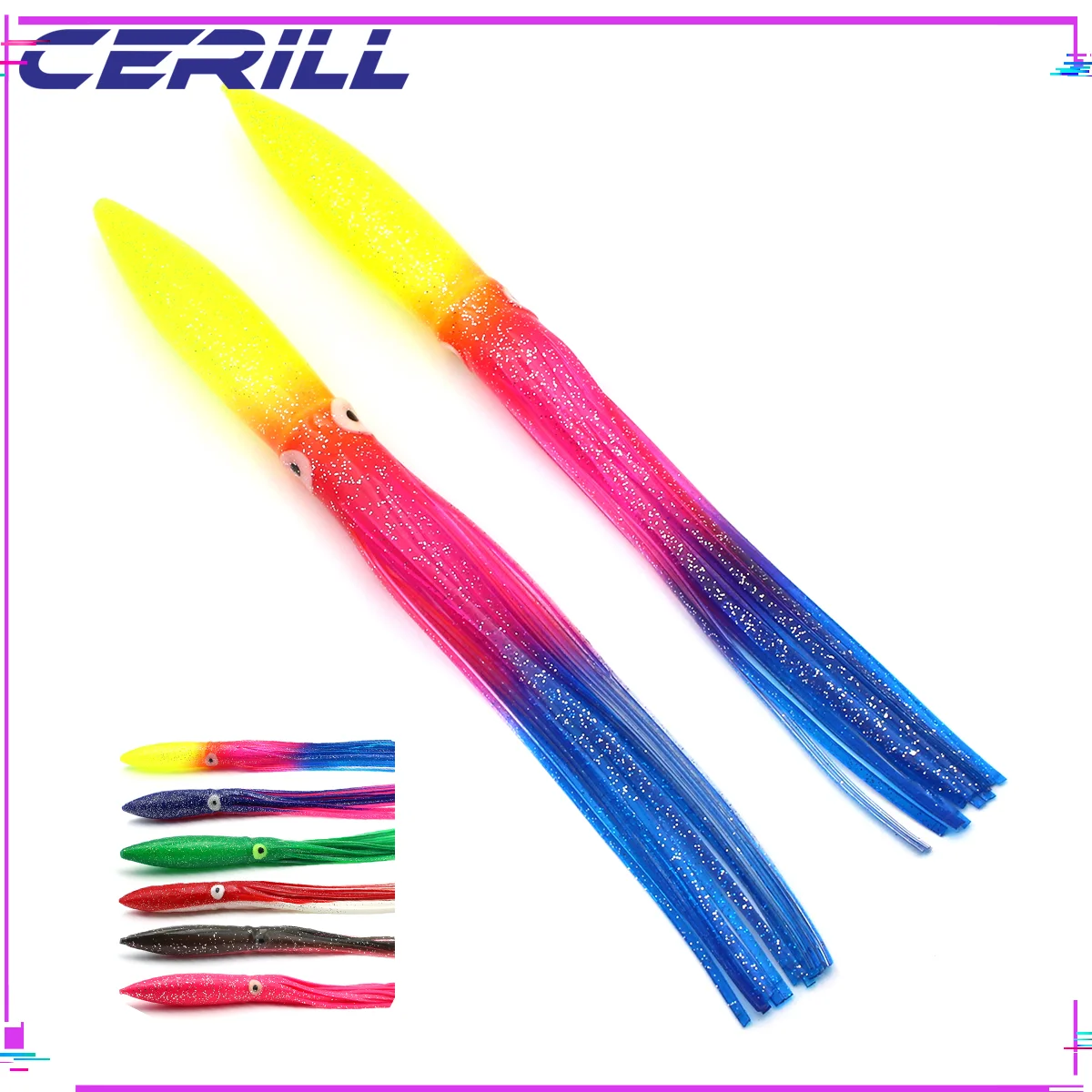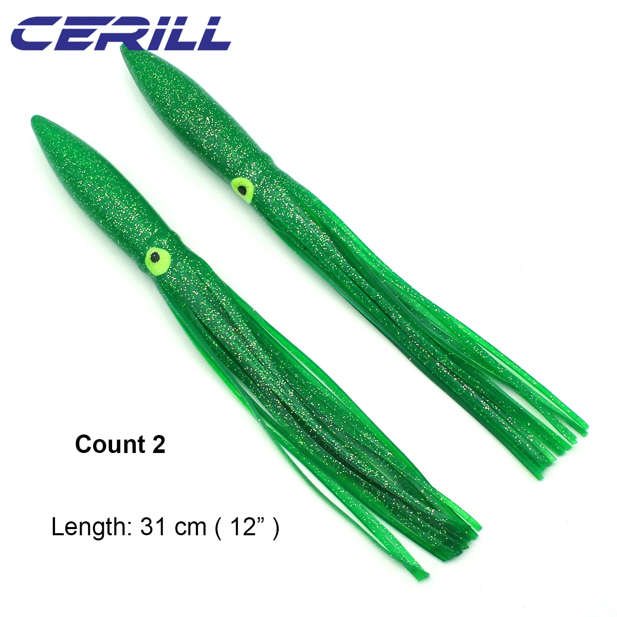Cerill-Señuelo de pulpo de plástico blando, cebo de agua salada aparejado, plantilla de carpa, Wobbler, Swimbait, falda de calamar multicolor, 31cm