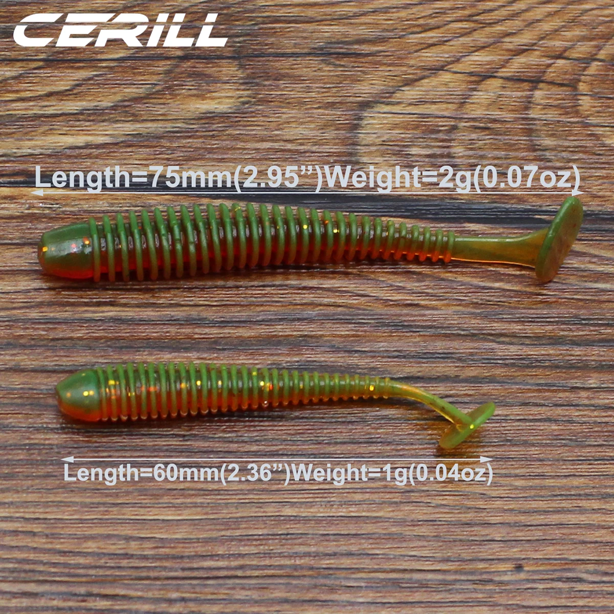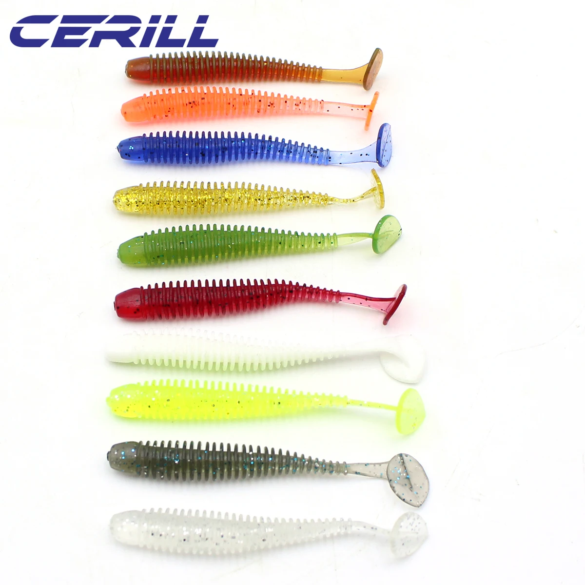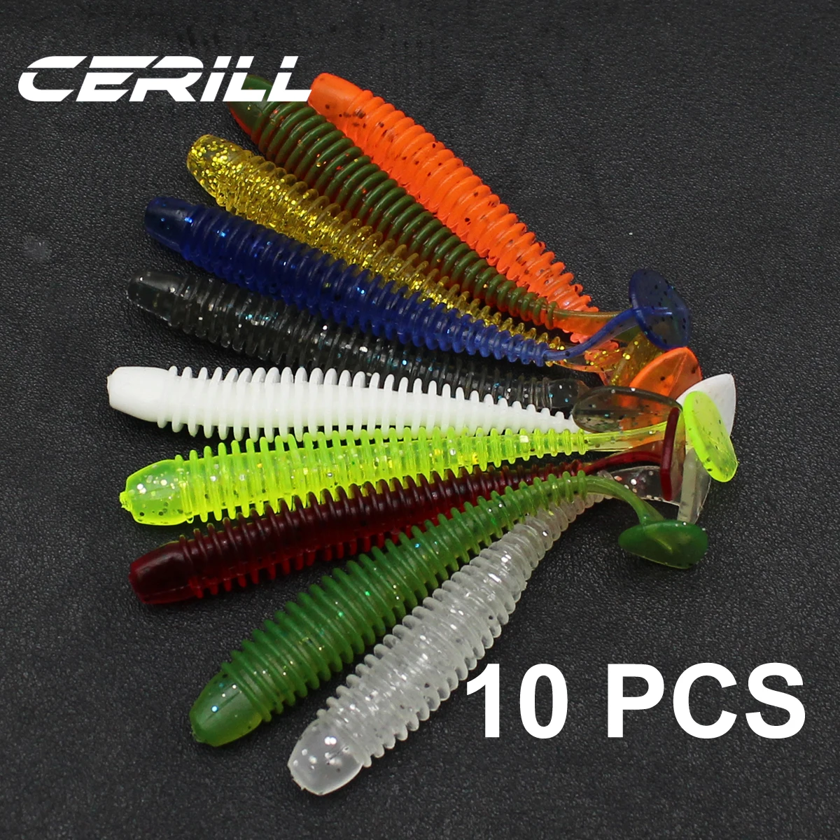 Cerill 10 Uds 6 cm 7,5 cm silicona T cola gusano Señuelos de Pesca suaves cebos artificiales Bass Jigging Wobblers Swing Swimbait Tackle