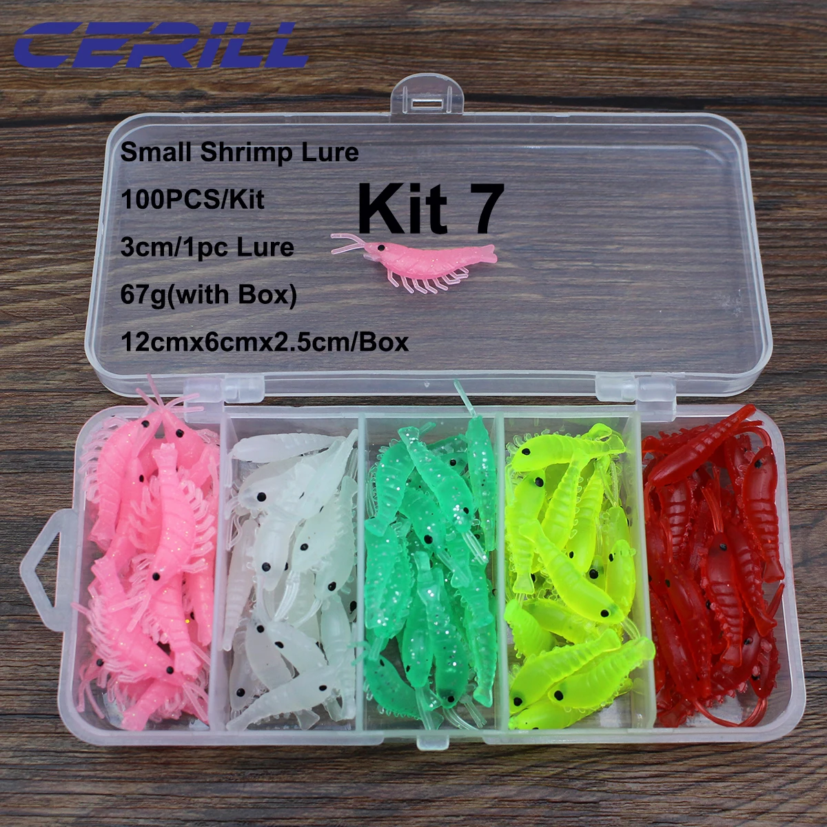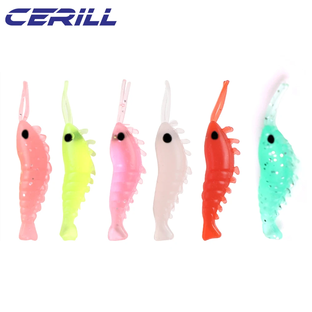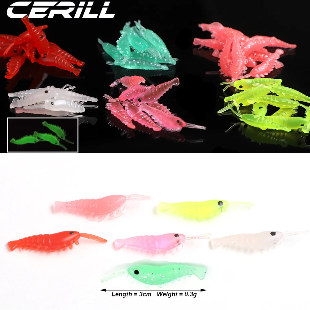 Cerill 100 pcs/kit 3 cm Soft Shrimp Fishing Lures Small Bait Glow Carp Bass Jigging Wobbler Artificial Silicone Swimbait Tackle
