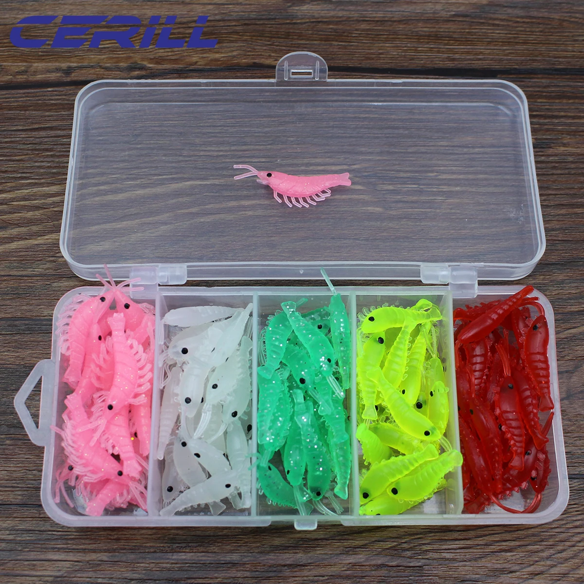 Cerill 100 pcs/kit 3 cm Soft Shrimp Fishing Lures Small Bait Glow Carp Bass Jigging Wobbler Artificial Silicone Swimbait Tackle
