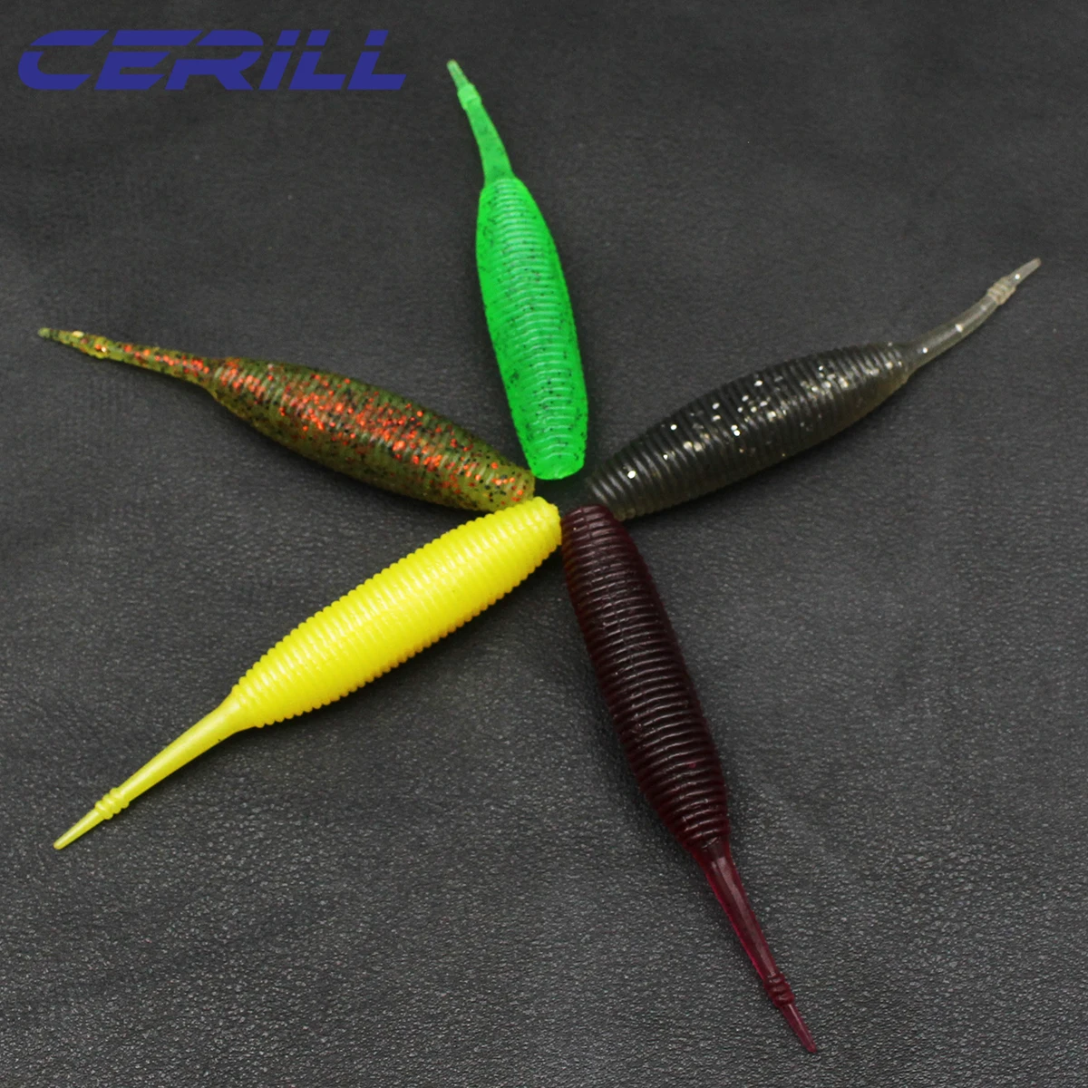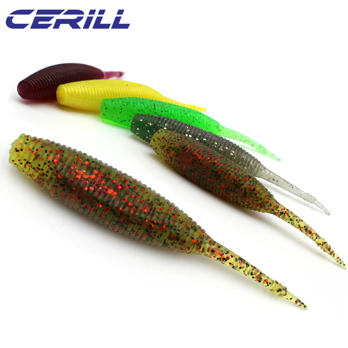 Cerill, 5 uds., Señuelos de Pesca suaves flotantes, 9 cm, 5G, cola de aguja de silicona, cebo de gusano, Wobblers, camarones, Lucio Artificial, aparejos de lubina