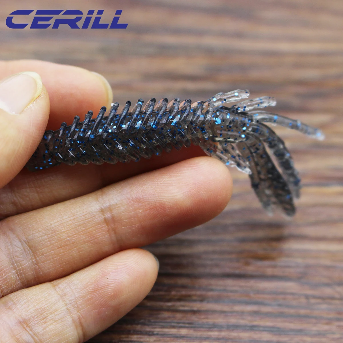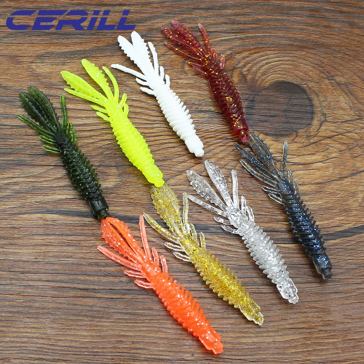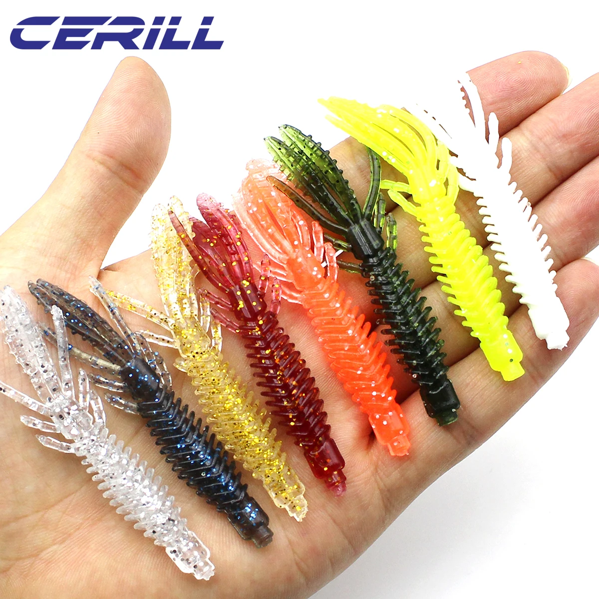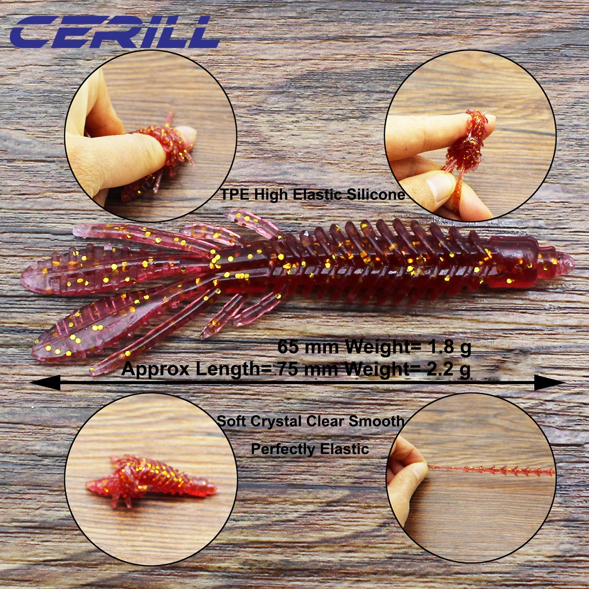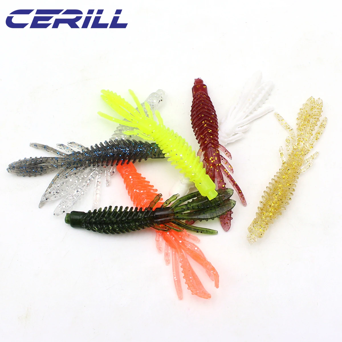 Cerill, señuelo de pesca suave de camarón flotante de 10 piezas con sal, señuelo de larva de silicona, plantilla Twintail, de doble cola Wobblers, aparejos de cebo de natación