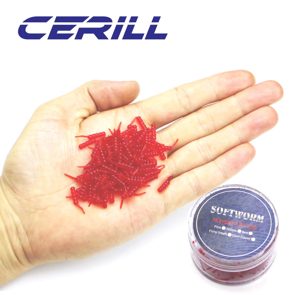 Cerill-Señuelo de pesca suave, cebo de gusano de 20mm, señuelo de pesca suave con olor a pescado, larva de silicona, carpa artificial, lubina, caja de plástico