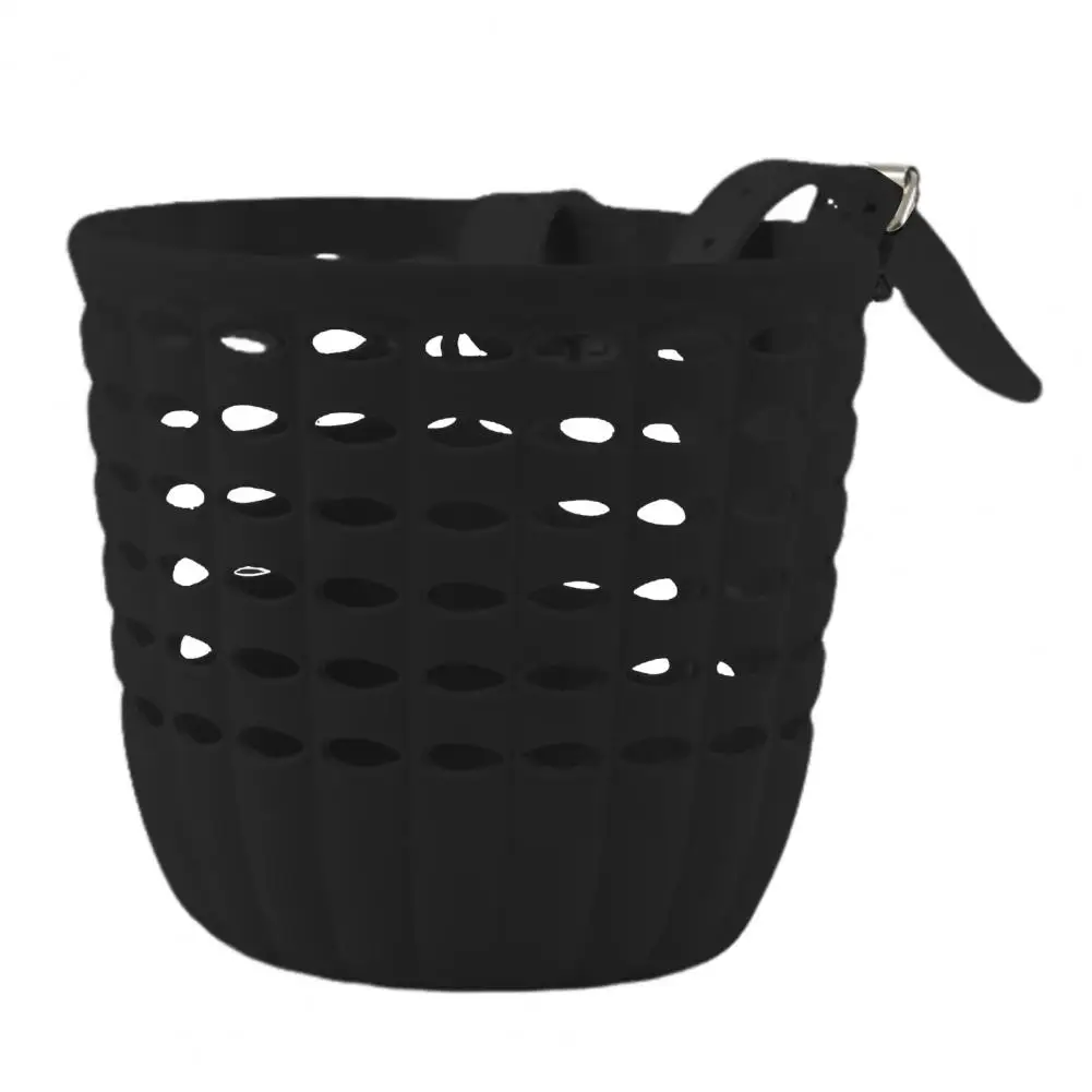 La fácil instalación está garantizada con dos correas ajustables de piel sintética ubicadas en la parte posterior de la canasta, lo que permite una fijación y extracción sin esfuerzo del manillar.Fabricada con material plástico reforzado, esta canasta ofrece flexibilidad sin comprometer la resistencia, lo que promete un uso duradero.