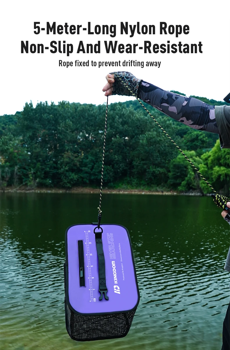 Cesta flotante para peces Kingdom, soporte de pesca plegable para peces capturados, cubo para pececillos, cebo de pesca de malla plegable portátil
