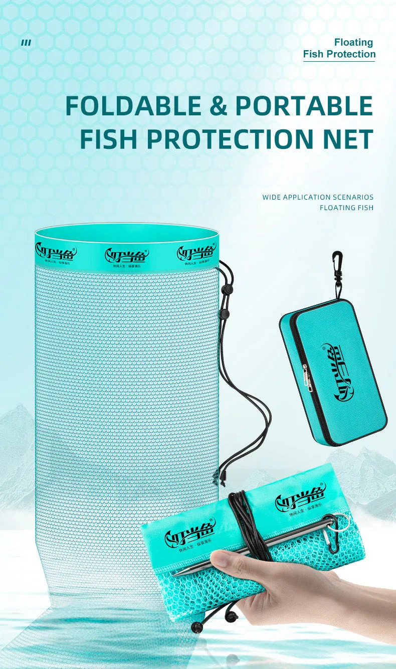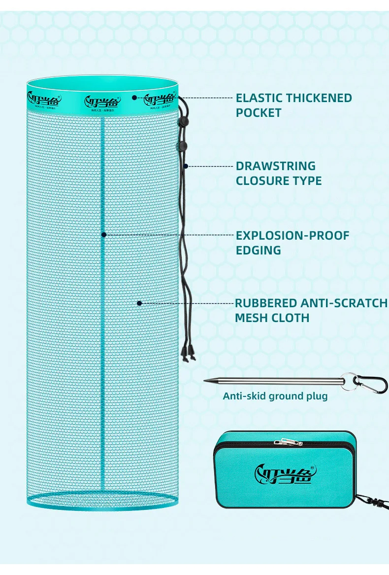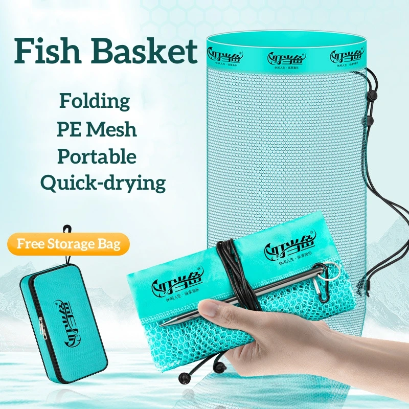 Cesta de pesca plegable portátil de secado rápido, red Fyke, aparejos de pesca al aire libre, bolsa de almacenamiento de peces vivos, 209G