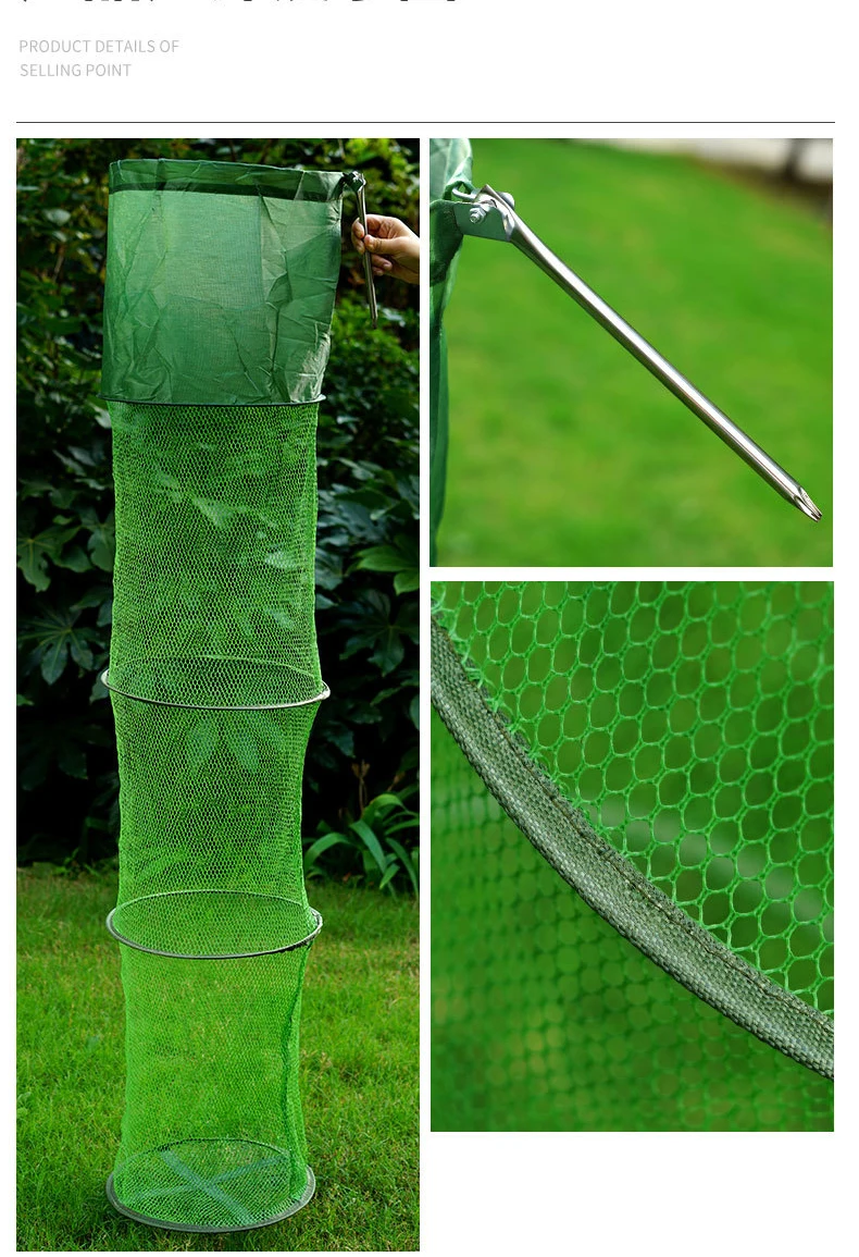 Diseño de anillos de acero inoxidable de alta resistencia, red de malla recubierta de pegamento impermeable, anillos de aleación de aluminio oxidado, diseño de mango de Posicionamiento universal de calidad anticorrosión Red de cuidado de peces para mantener vivos a los peces en la jaula bajo el agua