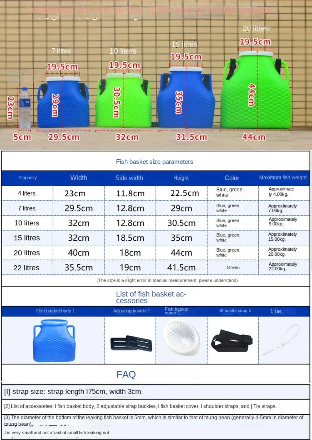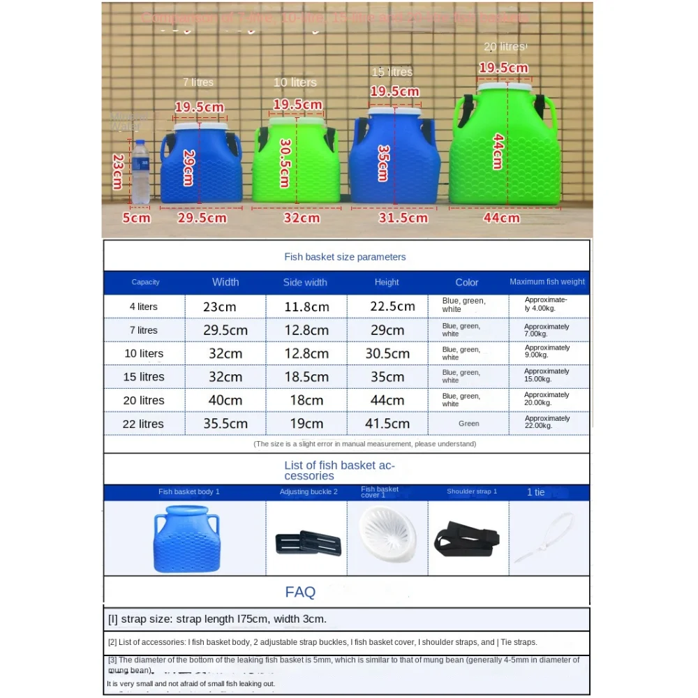 15/20L Outdoor plastic fish basket Multifunctional Live Fish Bucket Gear Tools Supplies Catch eels and loaches baskets for Fisherman