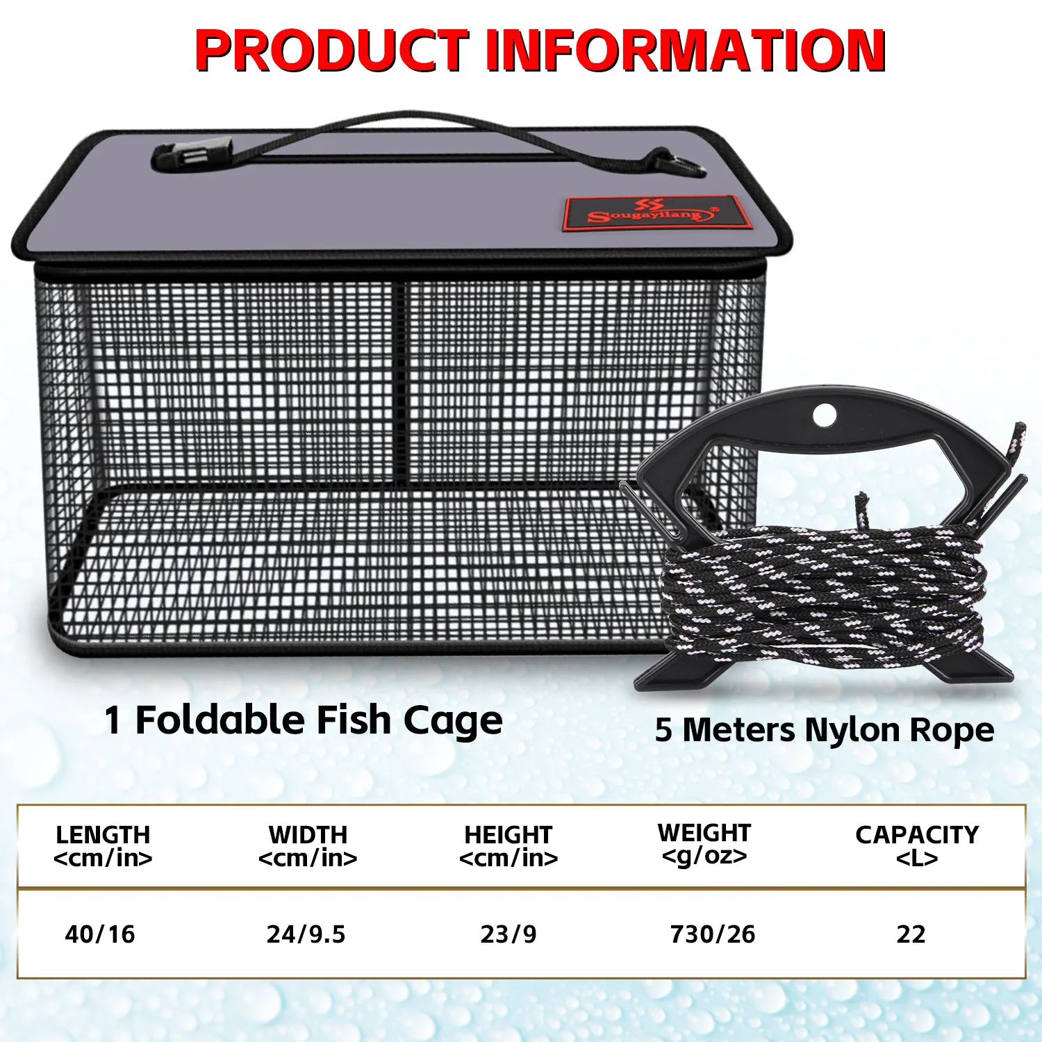 Cesta de pescado Sougayilang, jaula de red de pesca plegable, cestas de peces, recogedor de cangrejos, red de peces de fundición, cangrejo, cangrejo, camarones