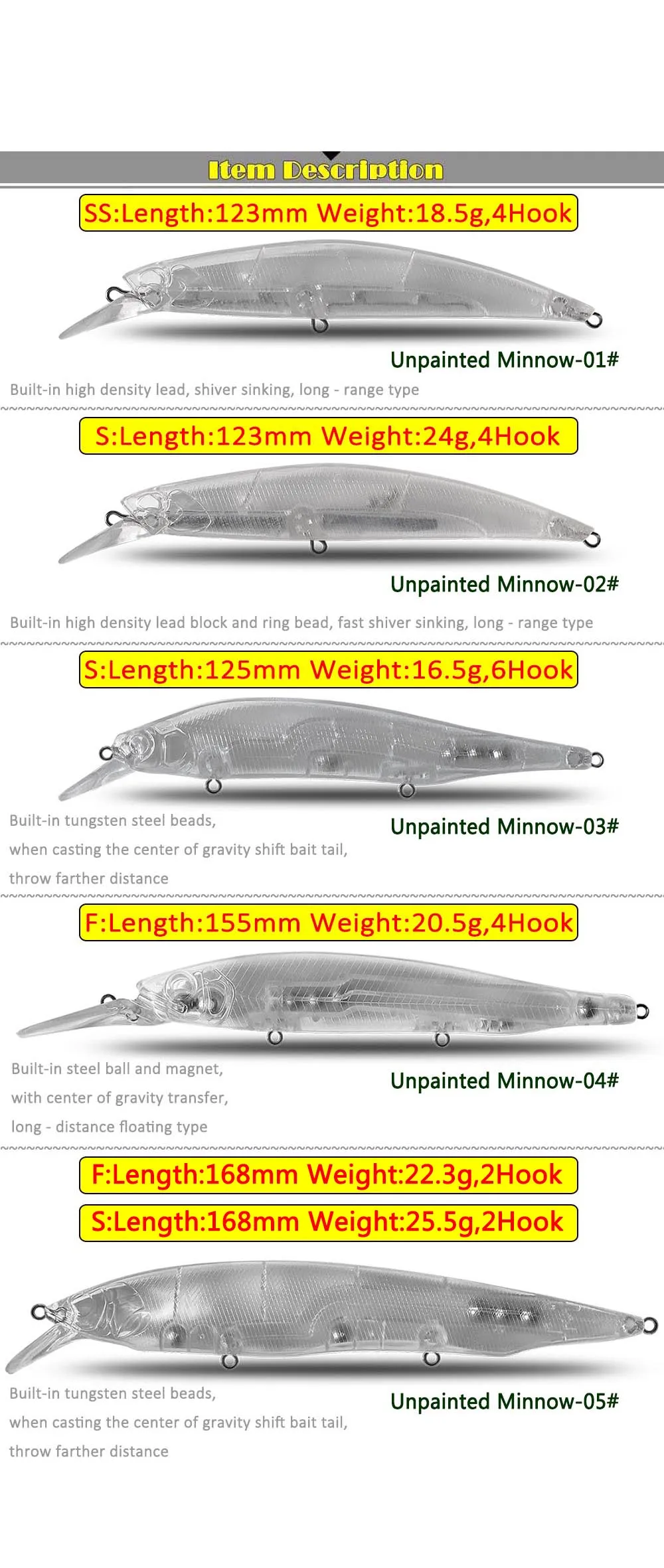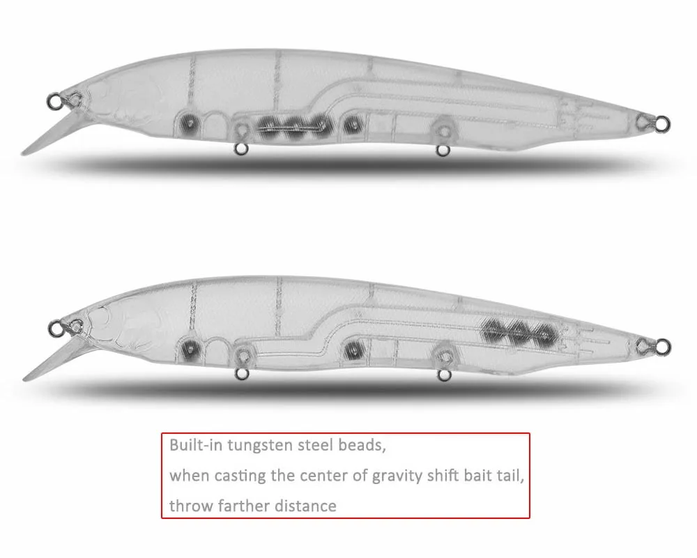 Before the blank lure is painted, each "8" type ring and connection part should be coated with acrylic glue for 2-3 times untill there is no bubble at the ring hole. the dwell time is around 10 minutes between each coating. and the painting can be make after the glue is completely dry, which can prevent the leaking problems when the bait is used.