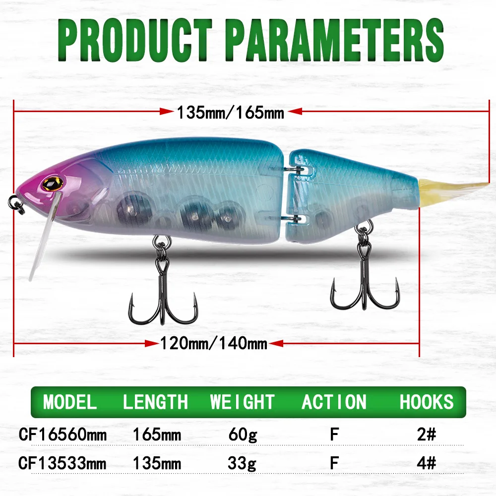 CF Lure-señuelo articulado de 135mm, 33g /165mm, 60g, Swimbait, Señuelos de Pesca de Lucio flotante de cuerpo duro, aparejos de cebo de pesca