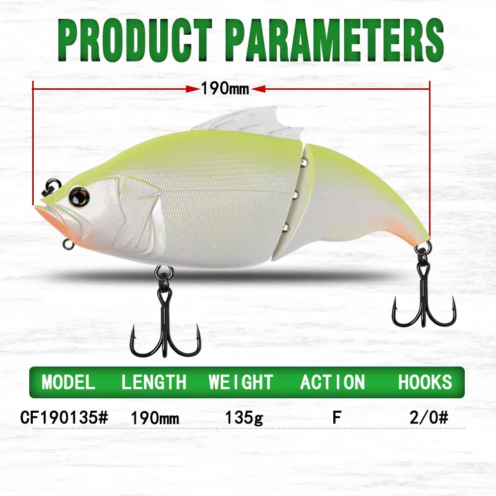 CF Lure-señuelo de pesca flotante, 190mm, 135g, cebos duros Crankbait articulados, Wobbler para pesca