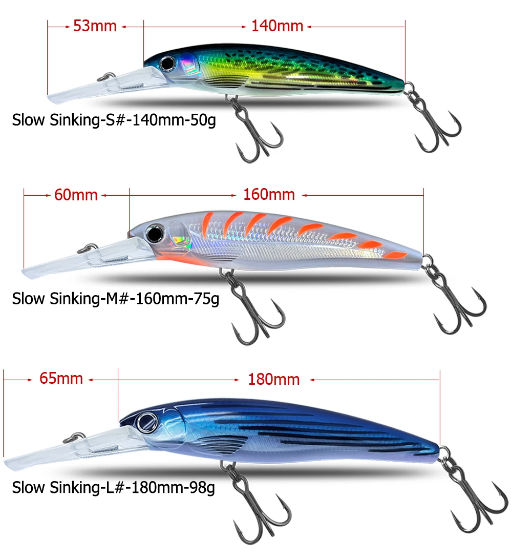CF LURE-señuelo de pesca de hundimiento lento, cebo Artificial de Lucio, pececillo grande, 140mm, 160mm, 180mm, 1 unidad