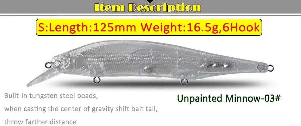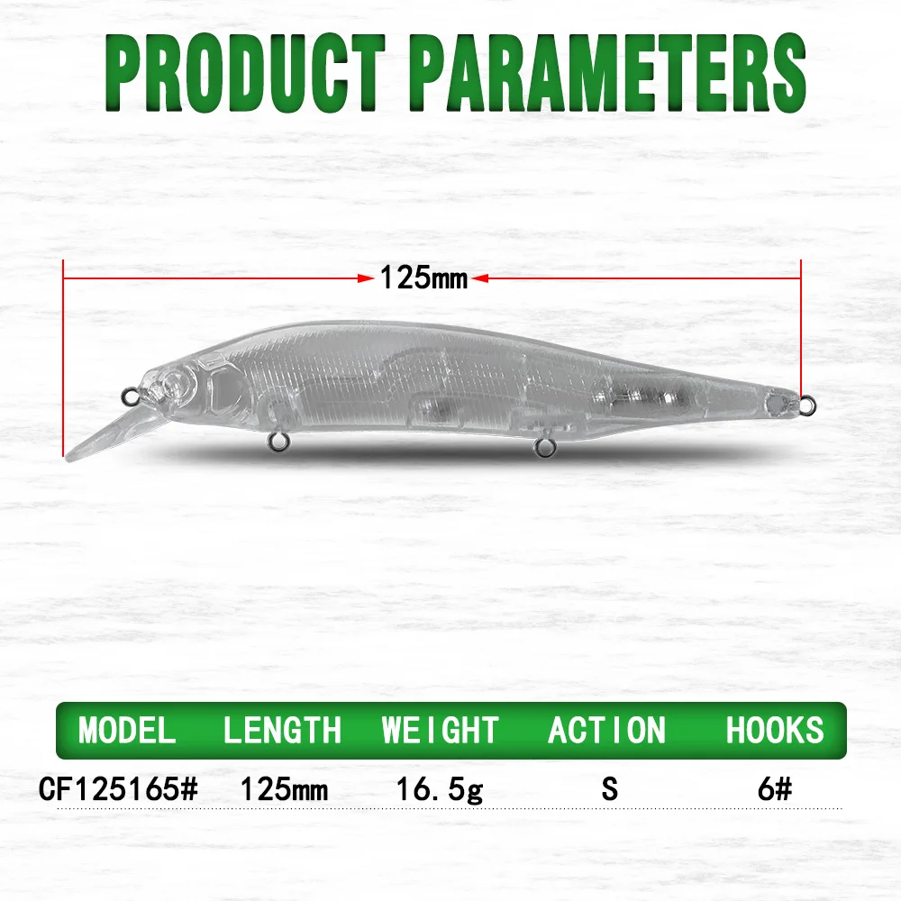 Cf señuelo ABS transparente sin pintar, cebo en blanco, 125mm, 16,5g, Minnow-03 #, cebo con cuenta de tungsteno, transferencia por gravedad, Lucio