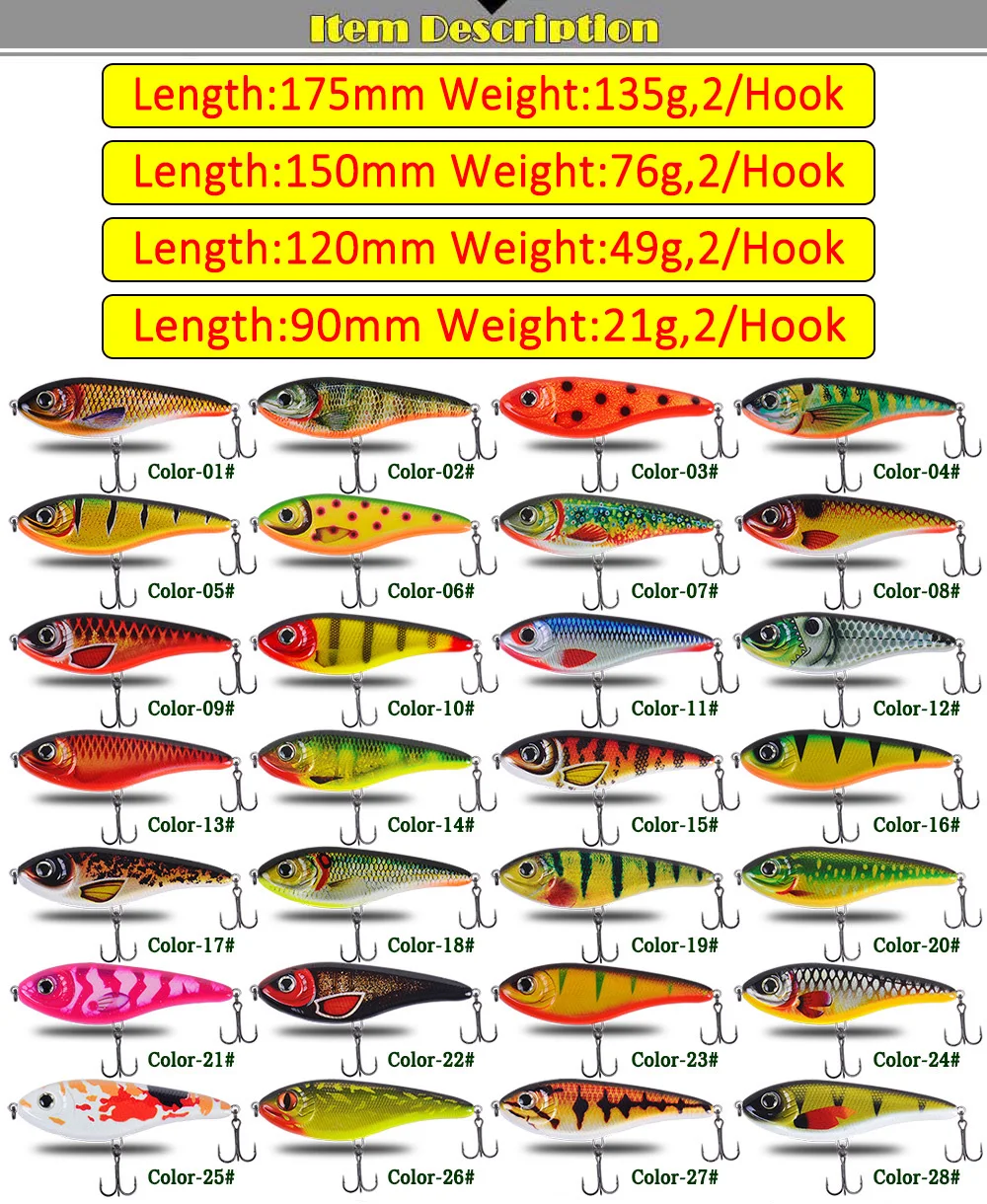 CF señuelo de pesca 214, 49, 76 y 135g (Color 51 ~ 67) musky pike slider plomo pesca jerkbait señuelo Crankbaits Señuelos de pesca