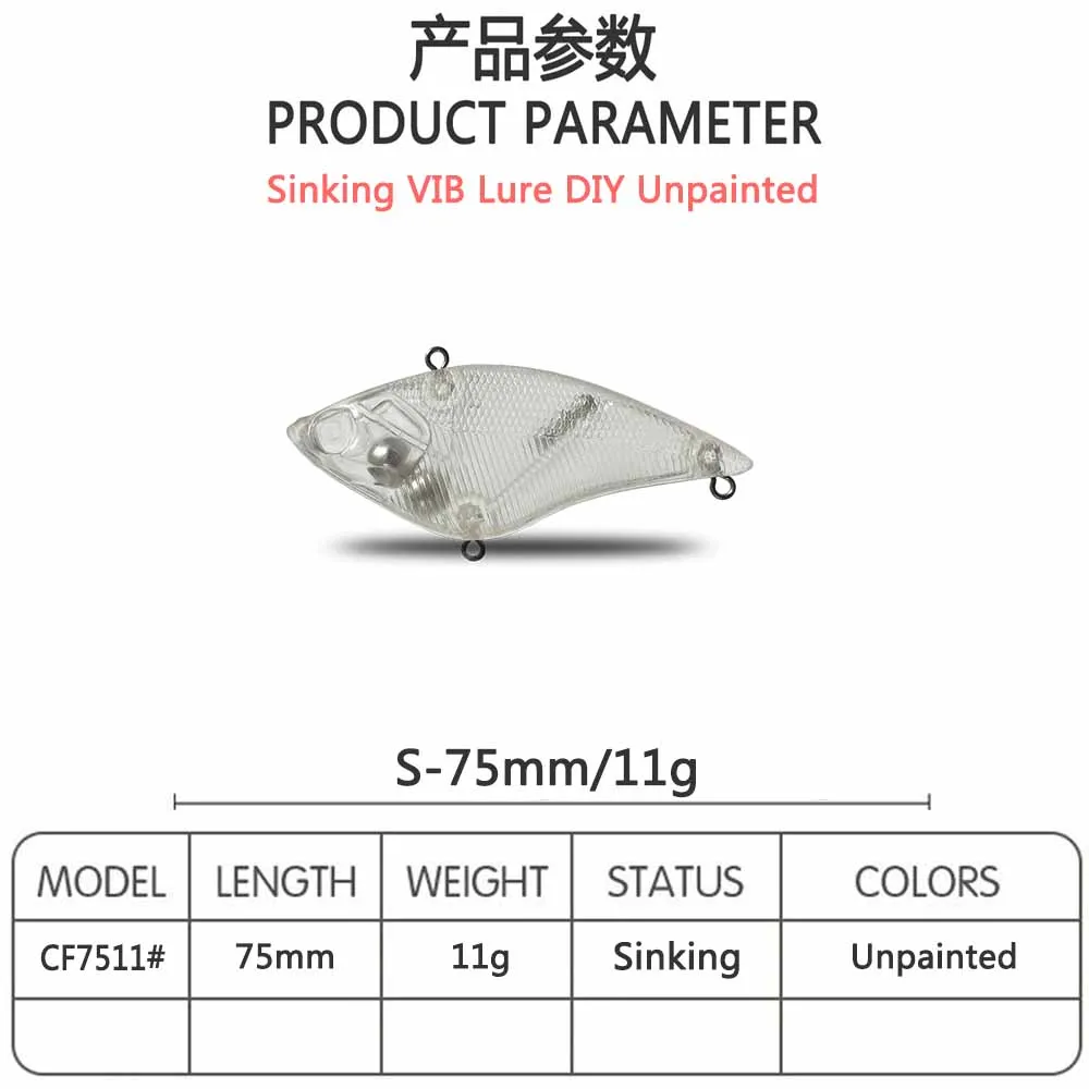 CF-señuelo de pesca sin pintar, cebo de plástico ABS, sin vibración, 75mm, 11g, 8 piezas