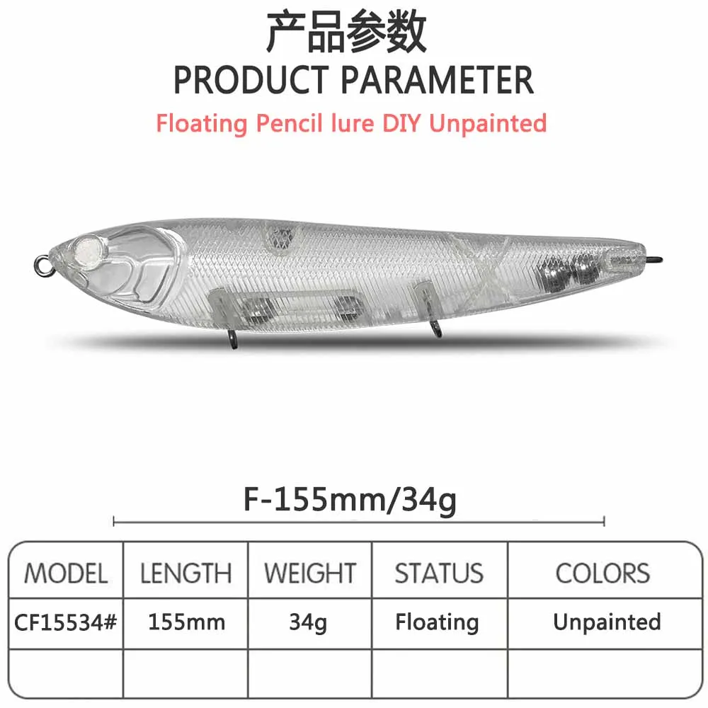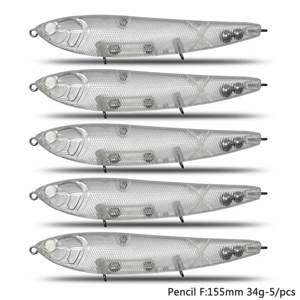 CF señuelo de pesca sin pintar, lápiz flotante artesanal, 155mm, 34g, 5 unidades