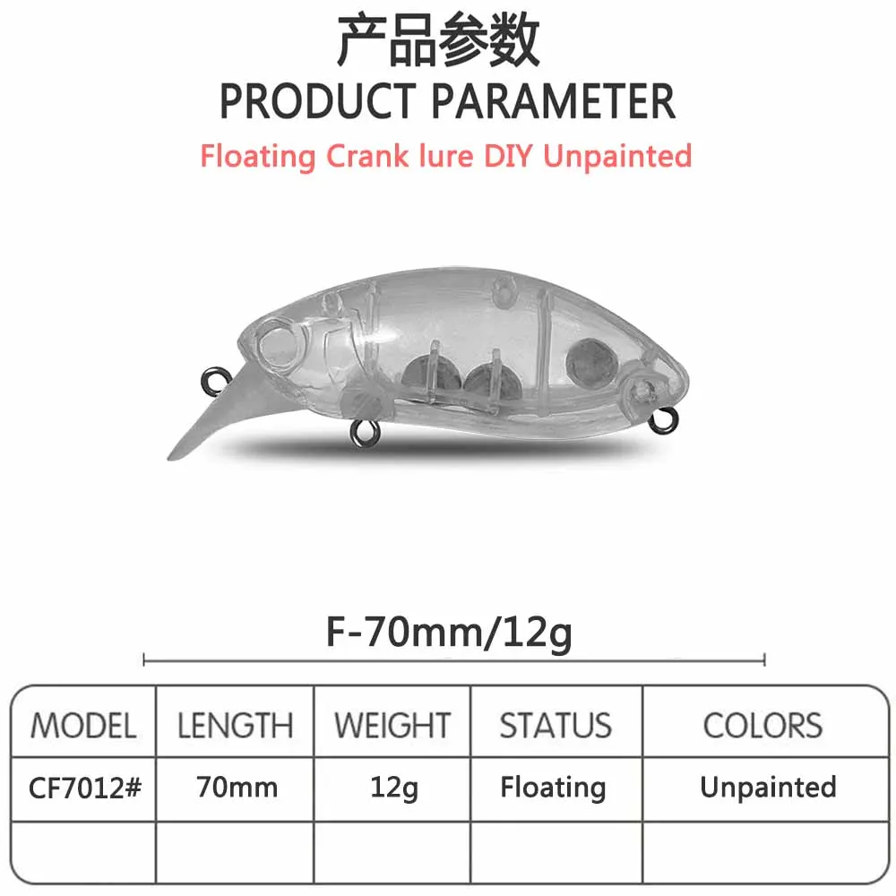 CF-señuelo de pesca sin pintar, manivelas de DIY flotando, 70mm, 12g, 10 uds, de plástico ABS, palanquilla