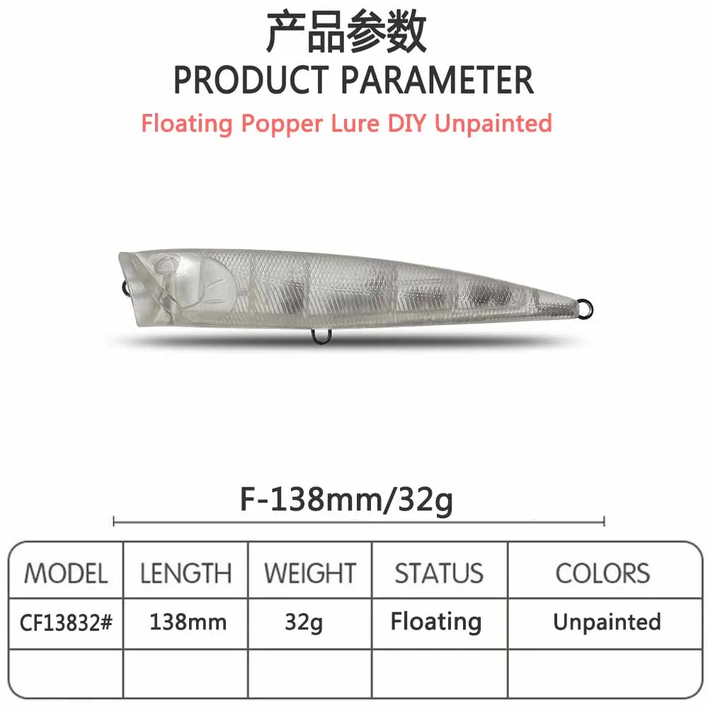 CF-señuelo de pesca sin pintar, Popper flotante de 138mm, 32g, 6 piezas, de plástico ABS