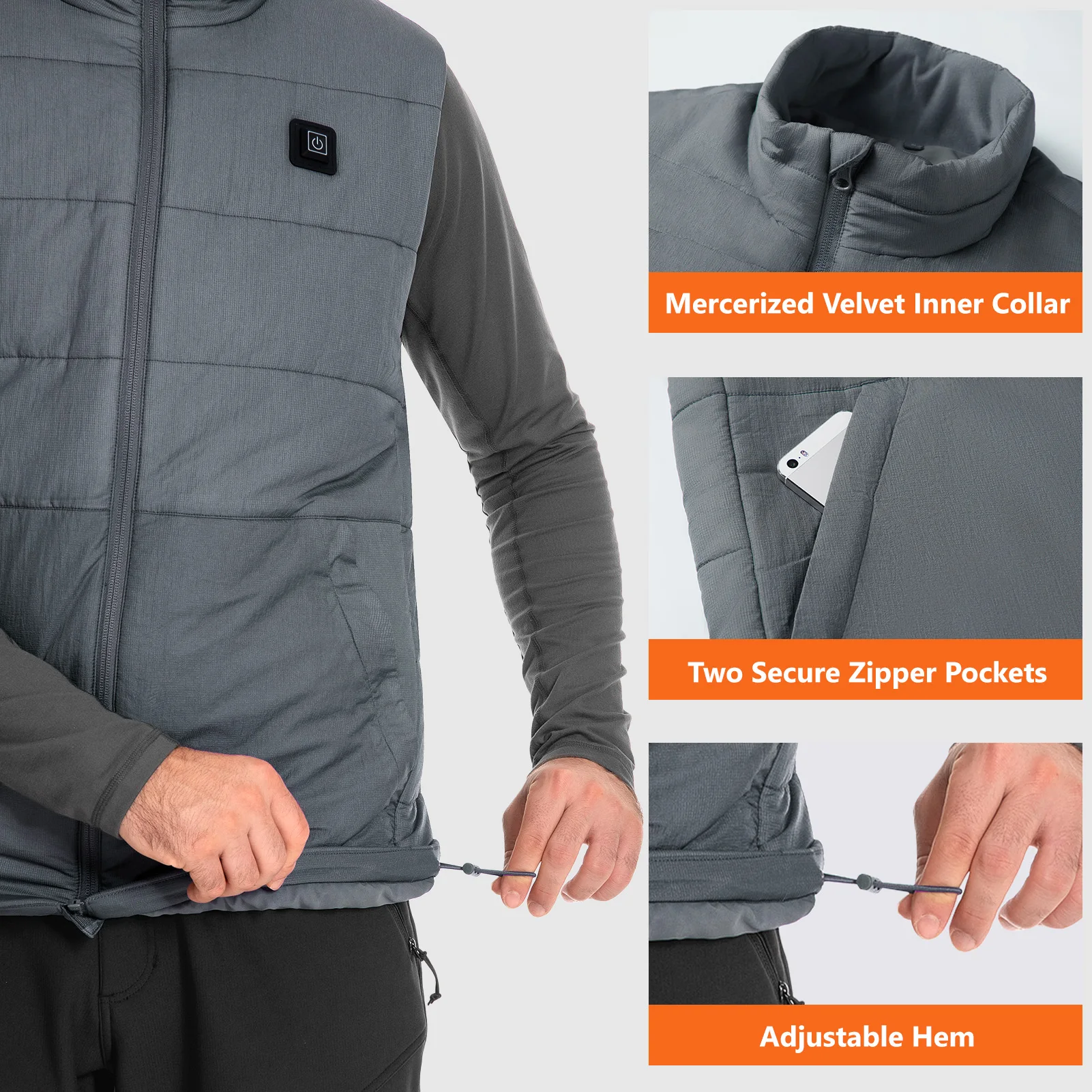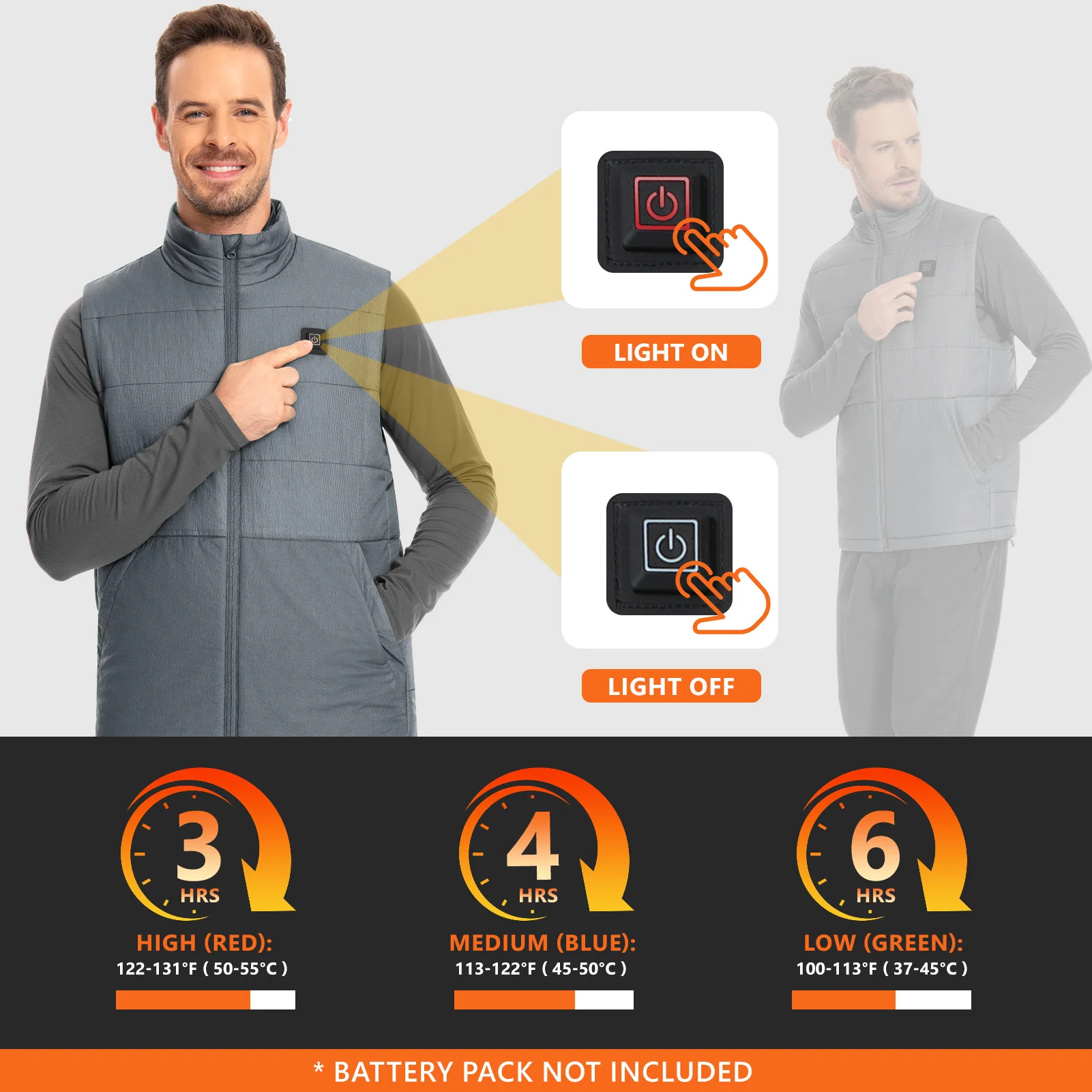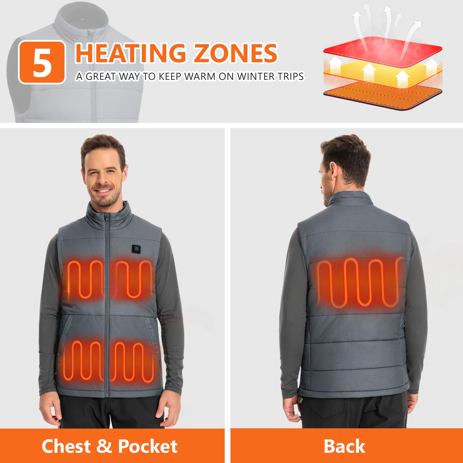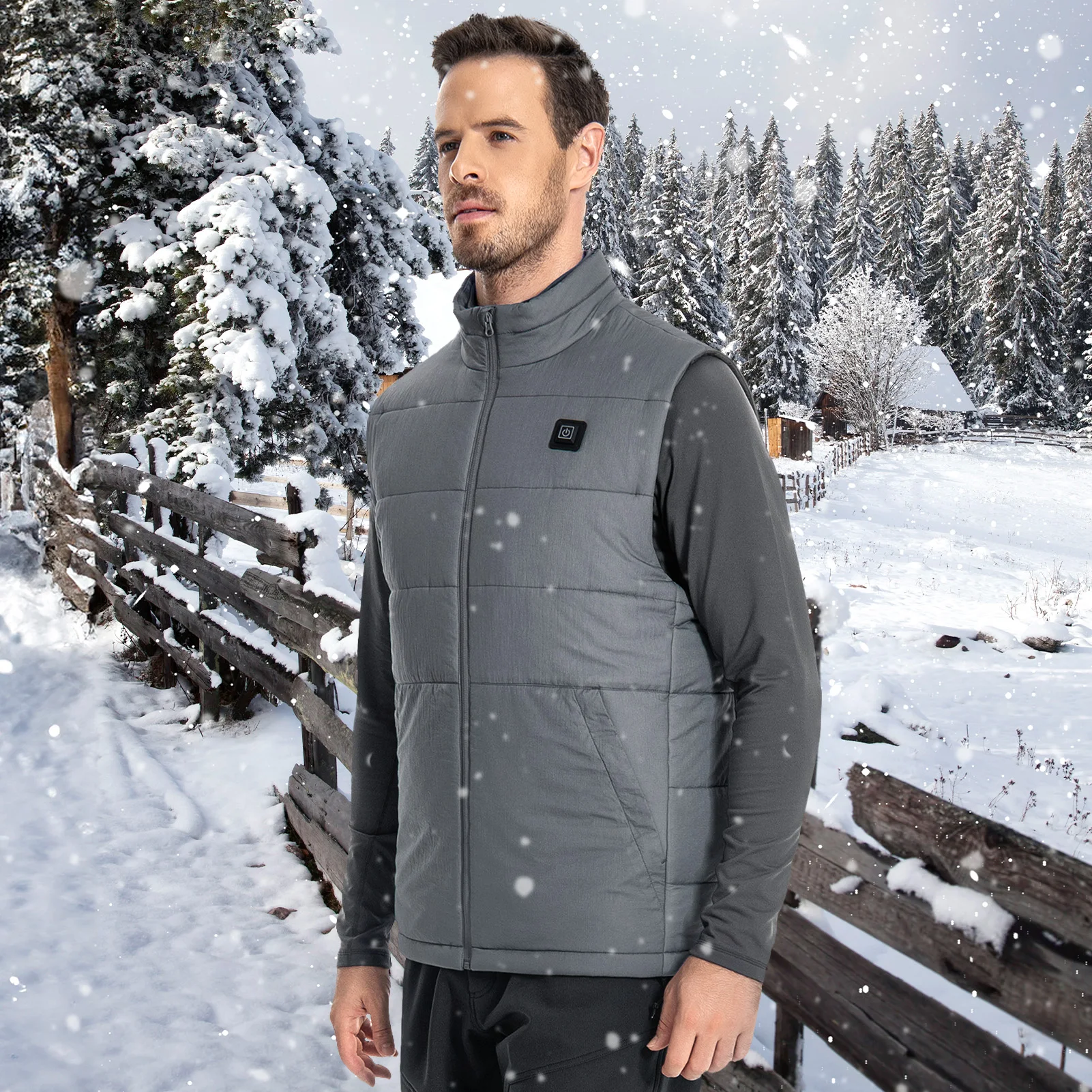 Elementos calefactores eficientes: equipados con 5 almohadillas térmicas ubicadas estratégicamente en el pecho, los bolsillos y la espalda, proporcionando calor constante alimentado por una salida de 5 V.