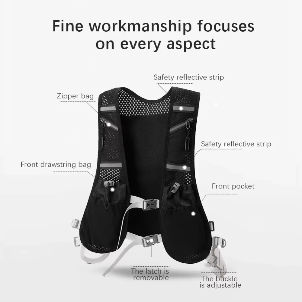 3. Convenient Vest-Style Zipper: This reflective hydration vest features a vest-style zipper design for easy on and off. No need to open buckles; you can quickly wear or remove the backpack, making it highly convenient for fast-paced activities.